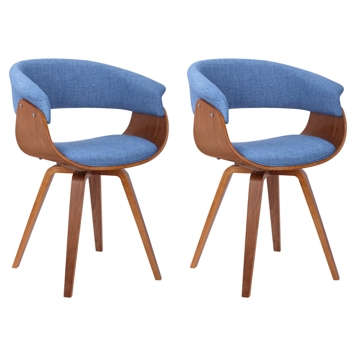 Summer - Mid-Century Chair (Set of 2) - Blue Fabric With Walnut Wood Finish
