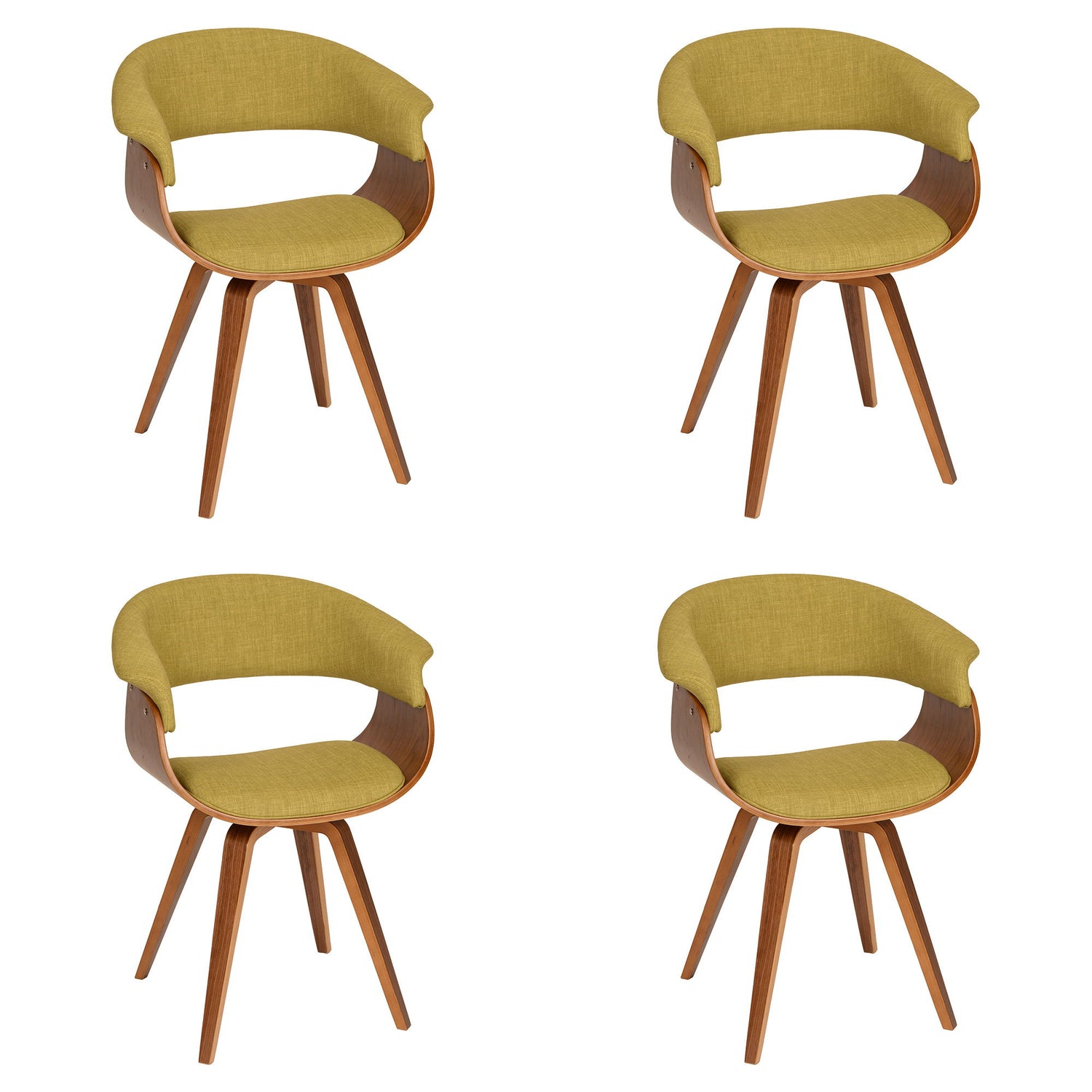 Summer - Modern Chair (Set of 4) - Green Fabric And Walnut Wood
