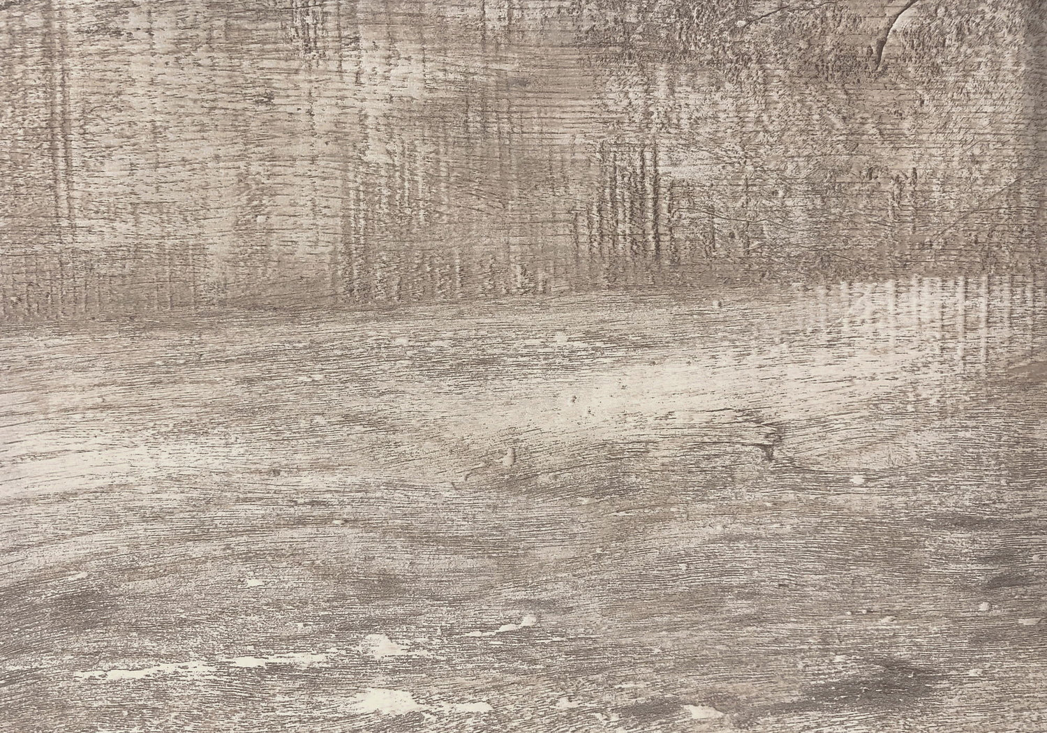 - Warm Finish: Features a warm taupe reclaimed wood look finish on triangle-shaped laminate tops.