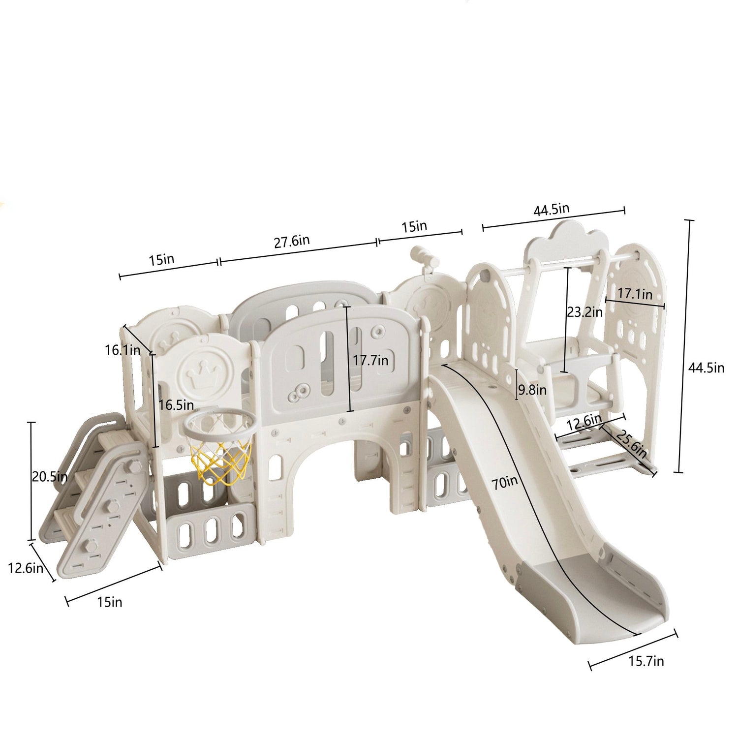 Versatile Toddler Slide With 11 - 1 Activity Center - Gray / Ivory