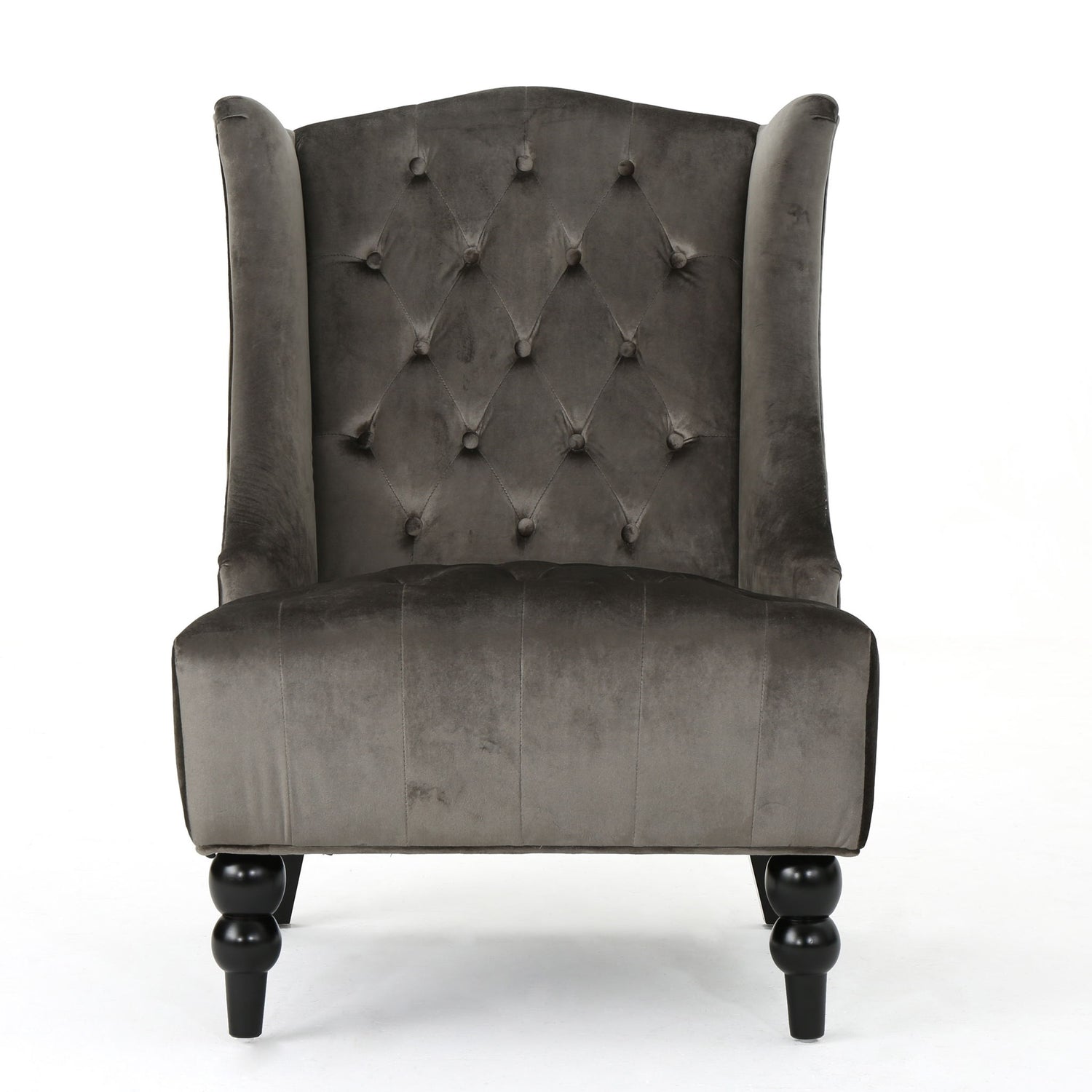 Toddman - Hi Back Club Chair Velvet With Wingback Design And ButtonTufted Detailing - Gray