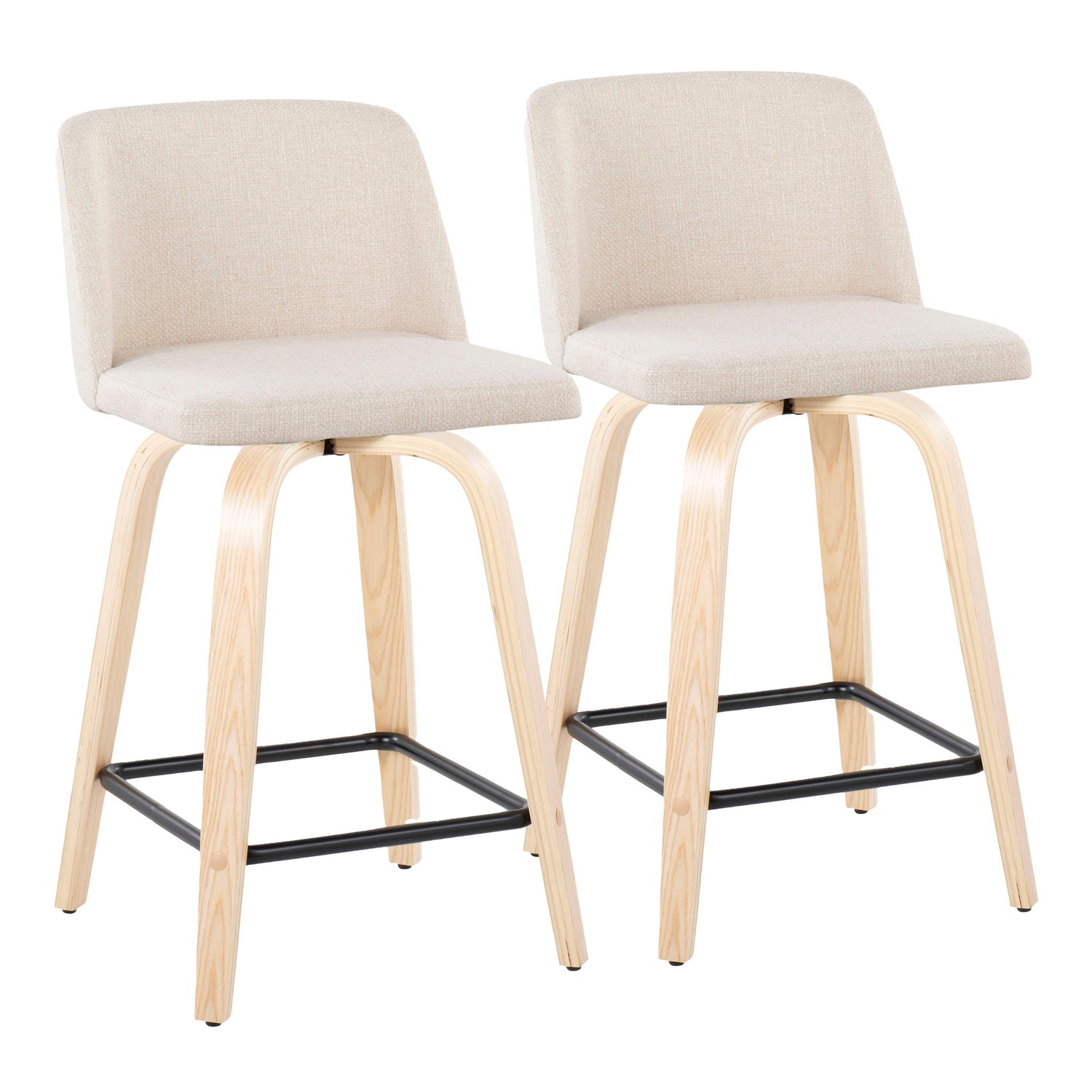 Toriano - Contemporary Fixed Height Counter Stool With Swivel With Square Footrest (Set of 2) - Natural / Cream