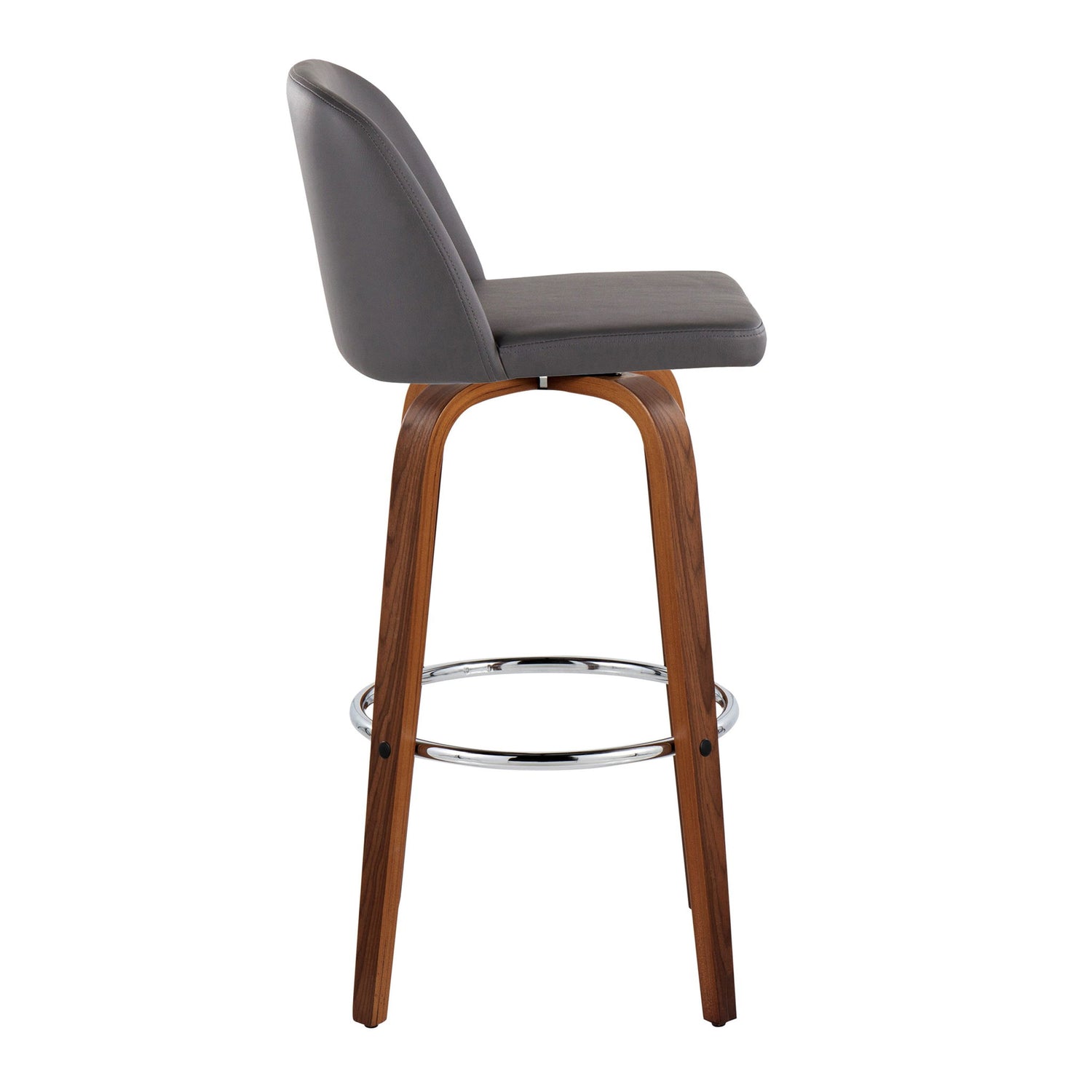 Toriano - Contemporary Fixed Height Barstool With Swivel & Round Footrest (Set of 2) - Walnut / Gray