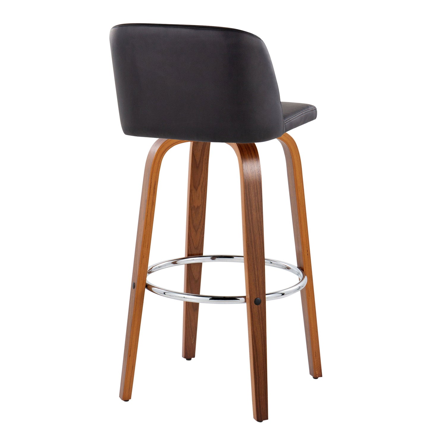 Toriano - Mid-Century Modern Fixed Height Barstool With Swivel With Round Footrest (Set of 2) - Walnut / Black