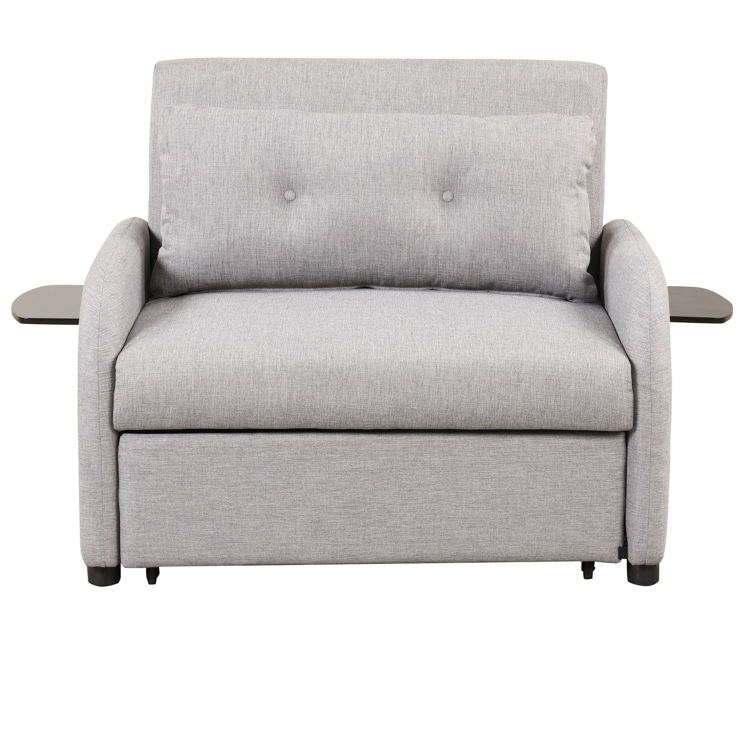 3 In 1 Pull Out Sofa Sleeper With Wing Table And USB Charge - Gray