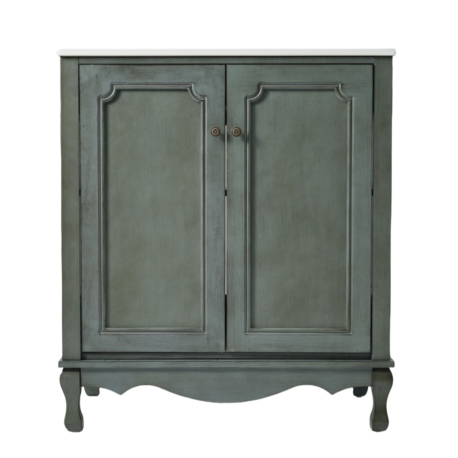 Double Sinks Bathroom Vanity Set, Vintage Bathroom Cabinet With 2 Separate Sinks - Antique Blue Green / Teal