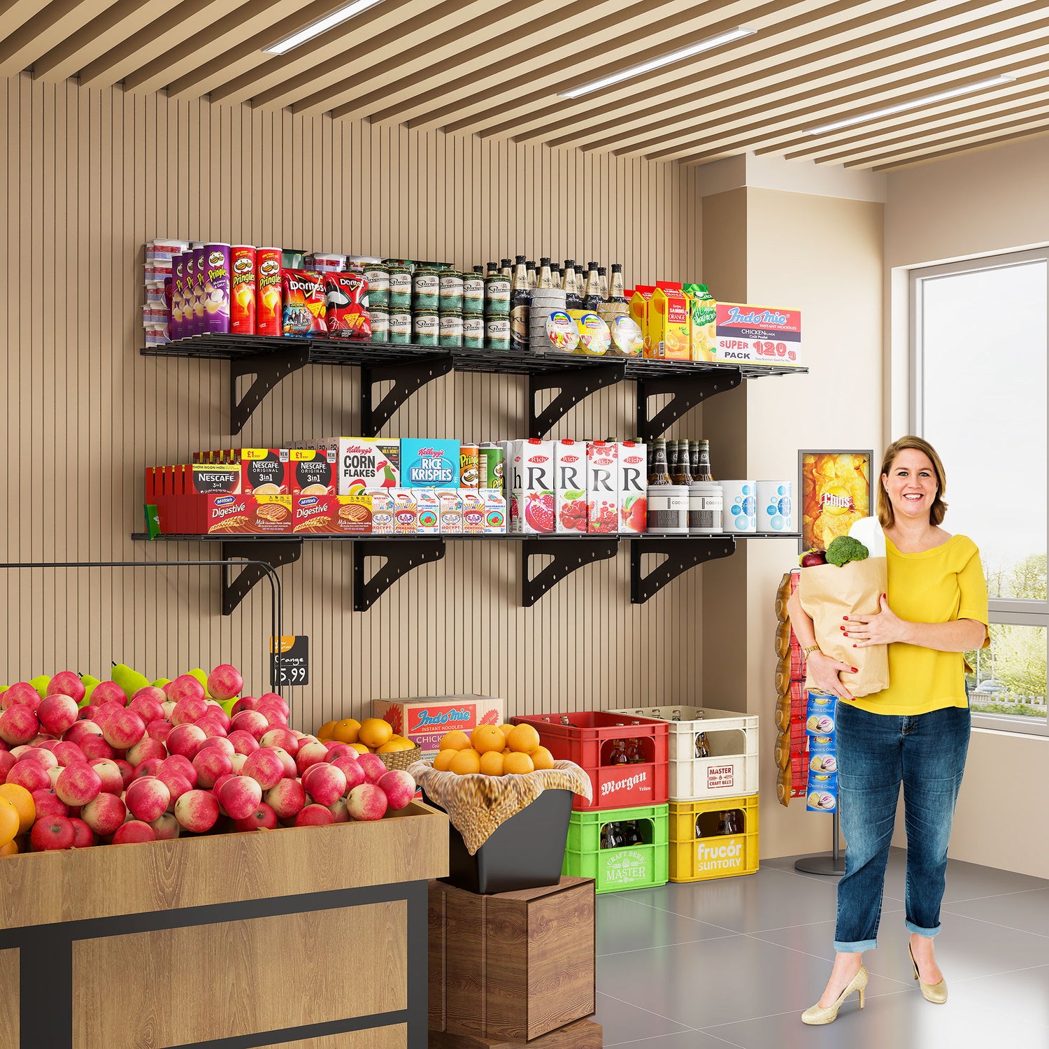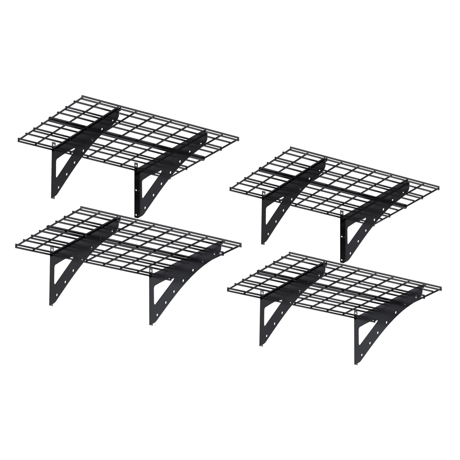 Wall Mounted Shelf For Garage Heavy Duty, Supermarket Storage Shelf (Set of 4) - Black