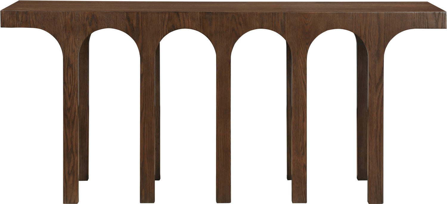 Finish off the look of your space with this beautiful Westfield console table. Its rich oak finish, oak veneer, and mixture of solid wood and MDF blend seamlessly in an art deco design. Ideal for entryways or living rooms, it offers both style and functionality with ample surface area and storage options. Take your decor to the next level with this statement piece that combines classic craftsmanship and modern sensibility, perfect for showcasing your personal style and enhancing any room's ambiance.