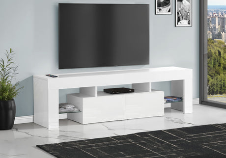 TV Stand, Console, Media Entertainment Center, Storage Cabinet, Glossy Contemporary & Modern - White