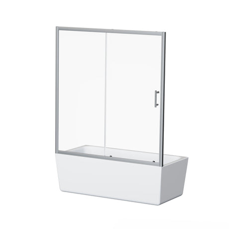 Single Sliding Shower Door For Bathtub With And Handle - Chrome