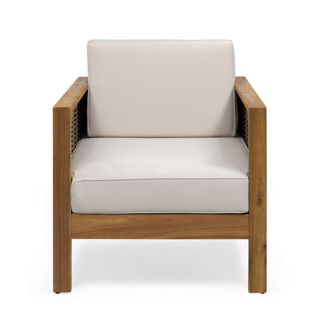 Outdoor Acacia Wood Club Chair With Wicker Accents