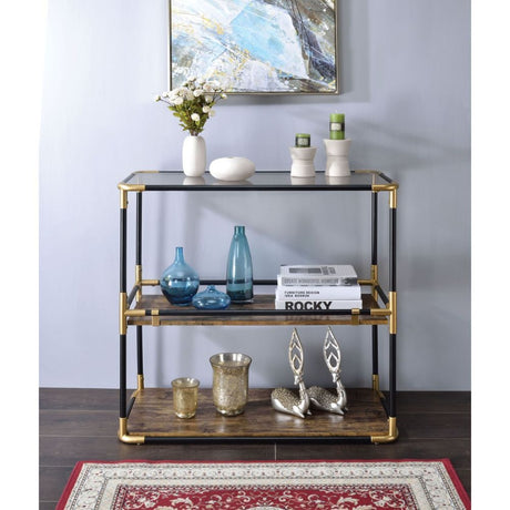 Heleris - Console Table - Smoky Glass Top & Black & Gold