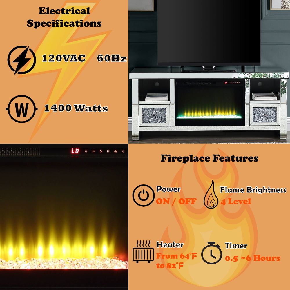 • Materials: Fireplace, Composite Wood, Mirror, Acrylic Diamond