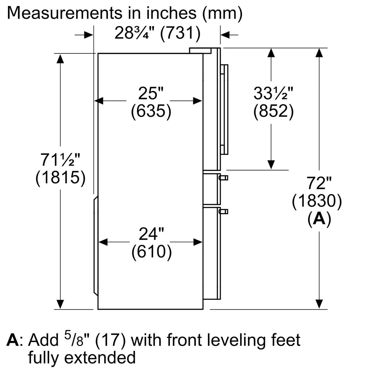 800 Series French Door Bottom Mount Refrigerator 36" Stainless steel (with anti-fingerprint)
