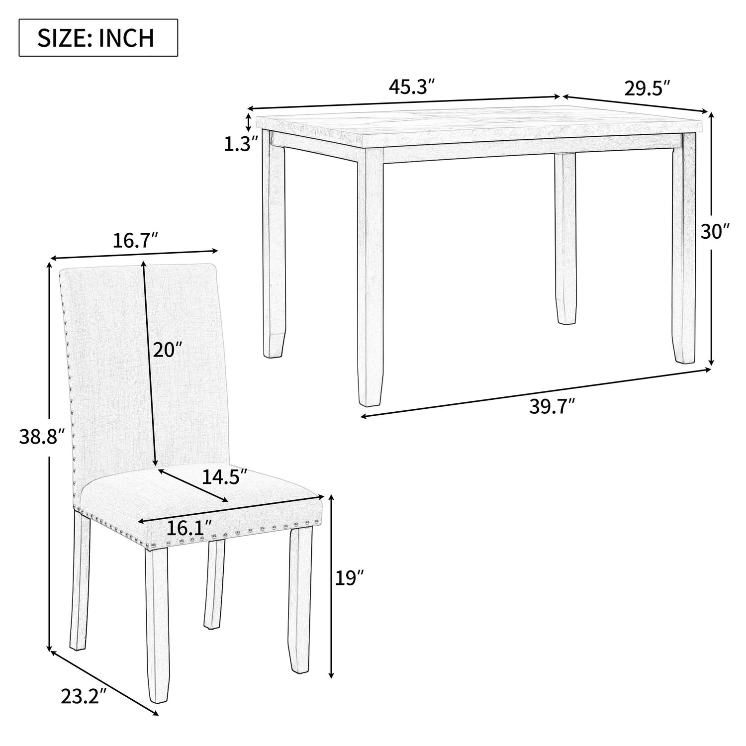 - Elegance and Modern Style: Faux marble top and rubber wood frame offer a modern and glossy look.