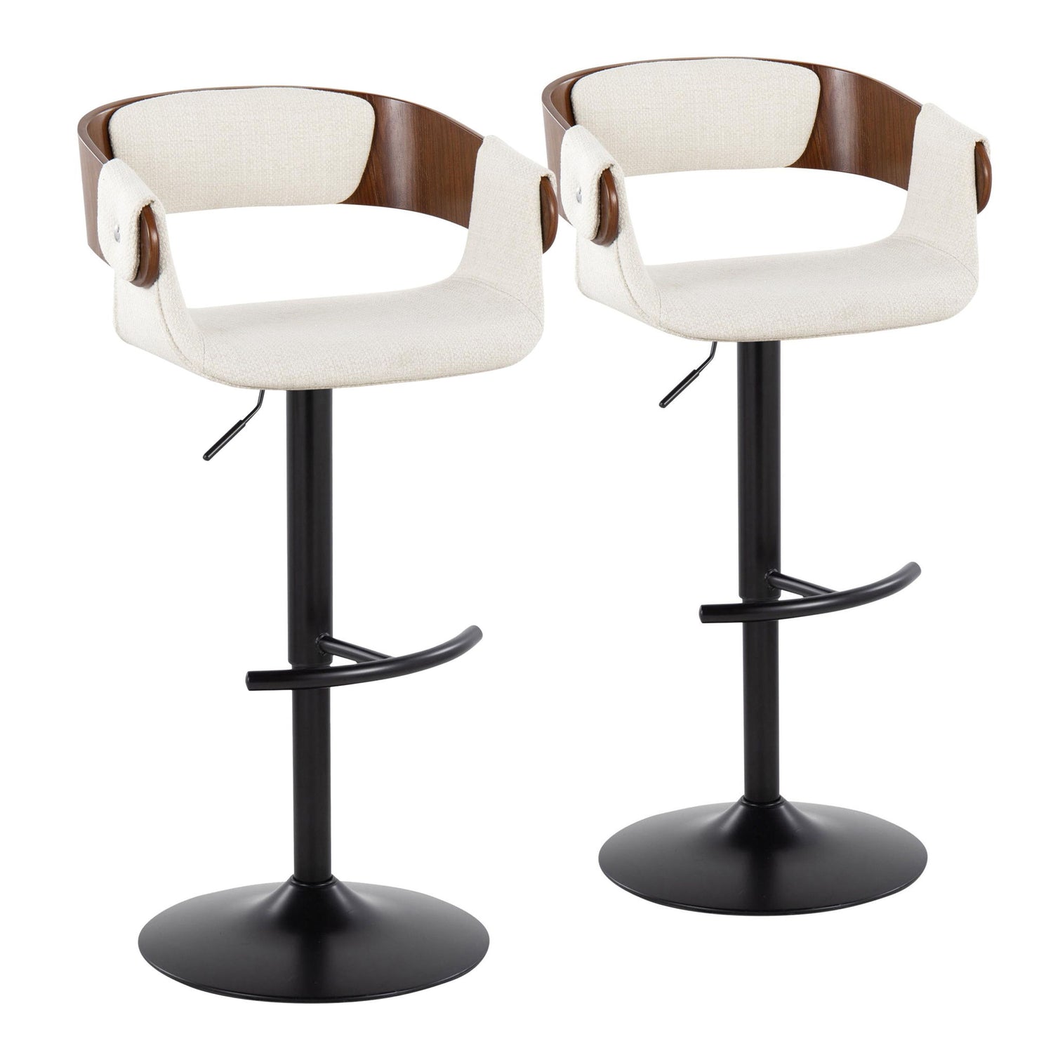 Elisa - Mid-Century Modern Adjustable Barstool With Swivel With Rounded T Footrest (Set of 2) - Black / Walnut / Cream