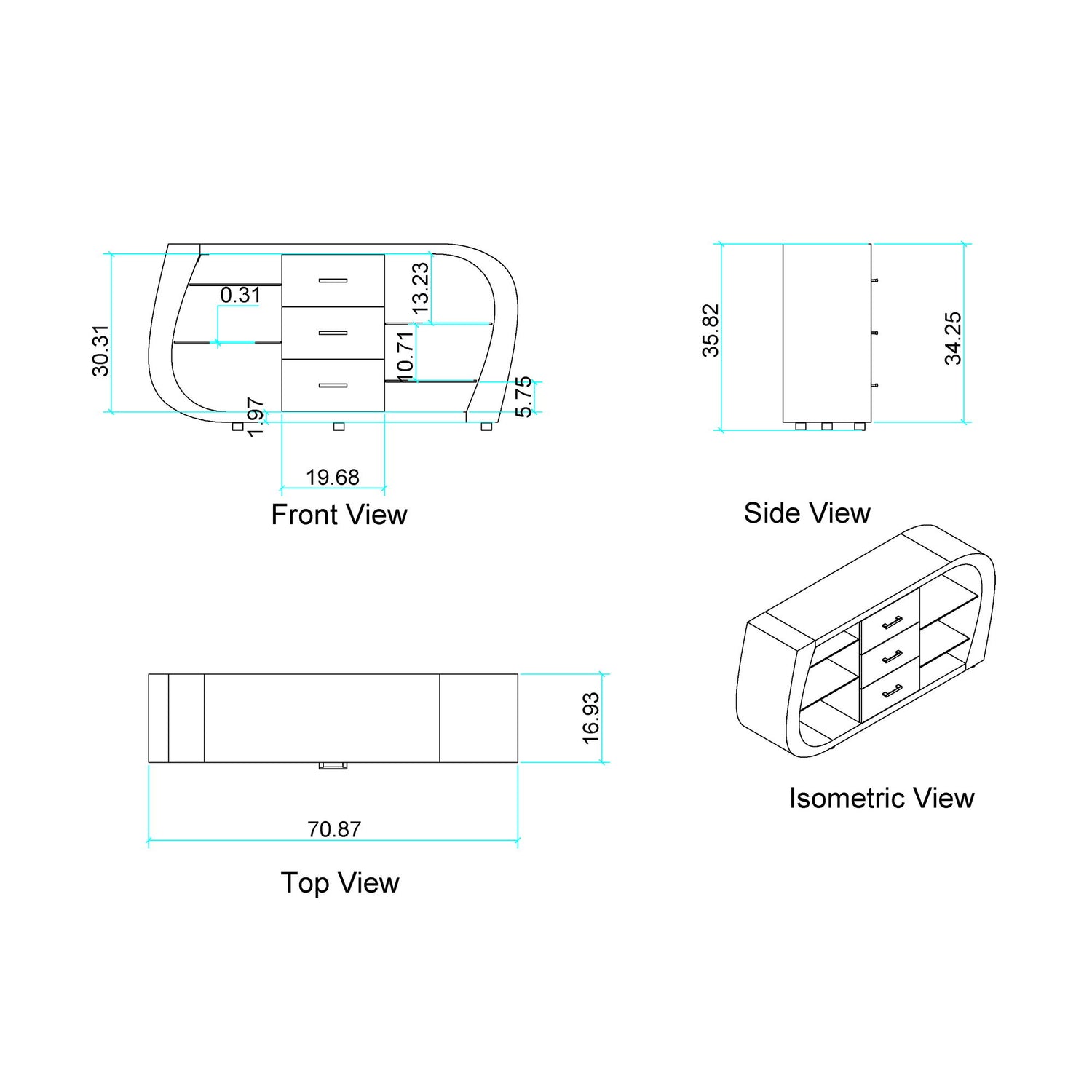 - Spacious Storage: Features open shelves and three storage drawers for ample organization