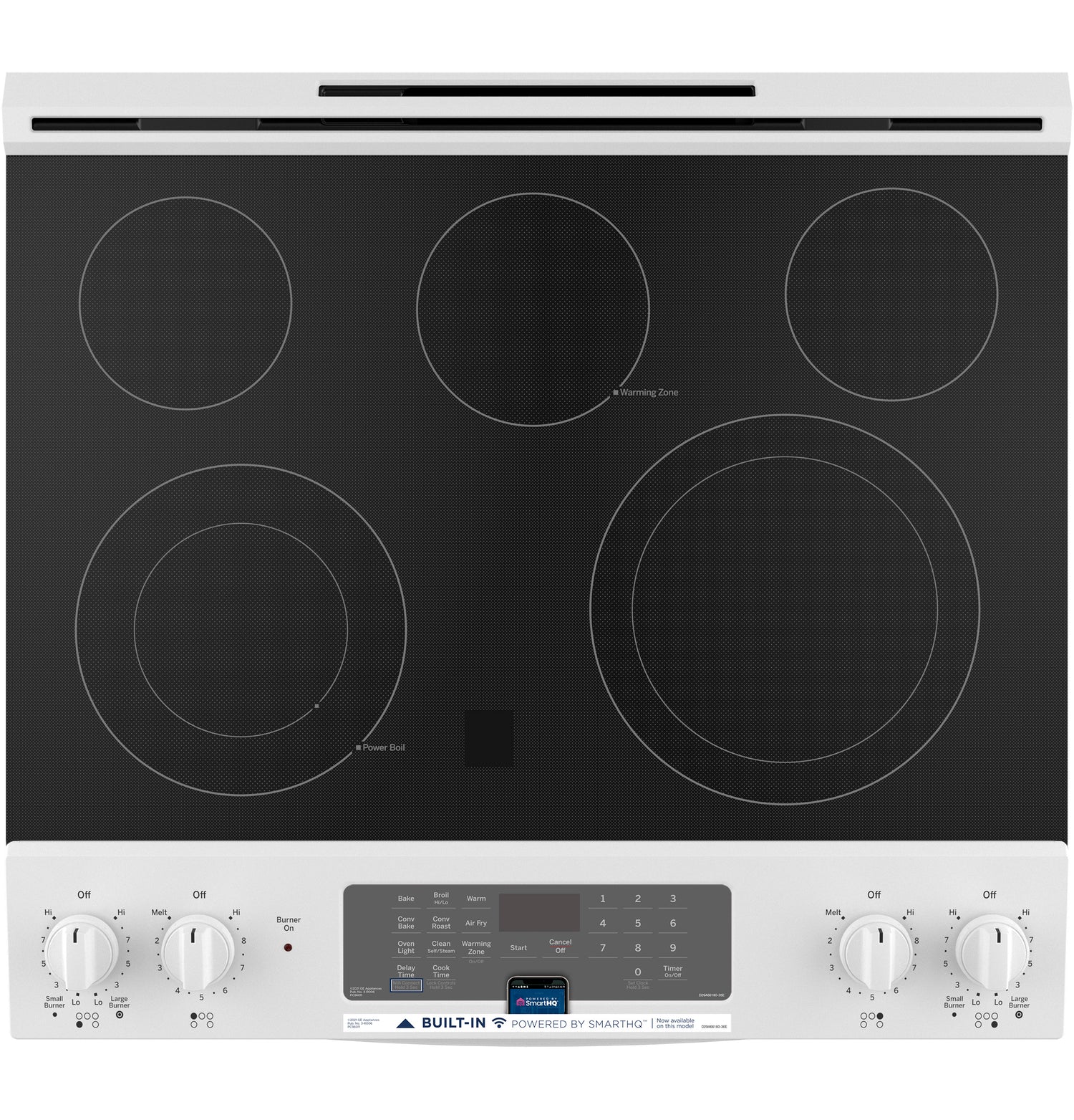 (BR)(B)No Preheat Air Fry(/B)(P)Cook healthier, crispier versions of your favorite foods in less time, thanks to an air fryer right in your oven that doesn't require preheating, a basket or a special tray(/P)(BR)(B)Built-in WiFi(/B)(P)This smart oven features built-in WiFi so you can control oven functions with the SmartHQ app on your smart device(/P)(BR)(B)Fit Guarantee(/B)(P)Replace your old 30" free-standing range with a new 30" slide-in model. GE slide-in ranges are guaranteed for an exact fit or GE Appliances will pay up to $300 toward modifications. See offer criteria and details(/P)(BR)(B)12"/9" dual element(/B)(P)Two heating elements in one offer flexibility(/P)(BR)(B)Convection(/B)(P)This convection oven cooks and browns more evenly, using a rear fan to circulate hot air(/P)(BR)(B)9"/6" Power Boil element(/B)(P)Produces rapid, powerful heat(/P)(BR)(B)Fifth element warming zone(/B)(P)Provides low-heat capability for foods(/P)(BR)(B)Fast preheat(/B)(P)Make hot meals in a hurry w
