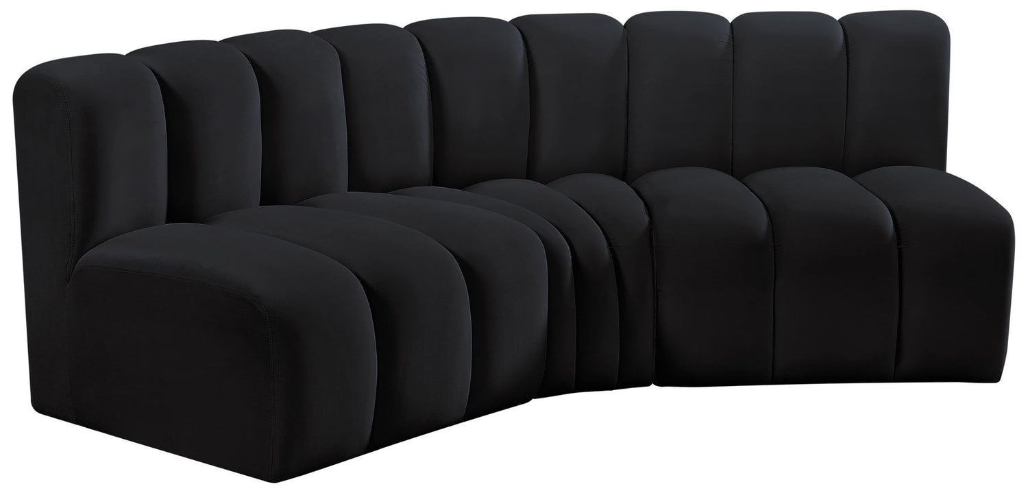 Arc - Velvet 3 Piece Modular Corner Sofa - Black