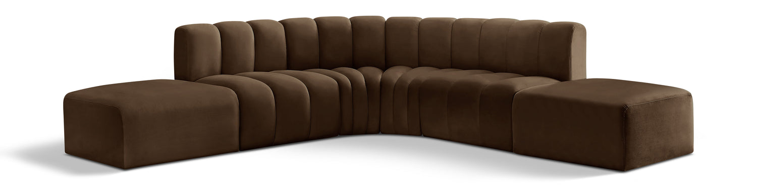 Arc - Velvet 6 Piece Corner Modular Sofa - Brown