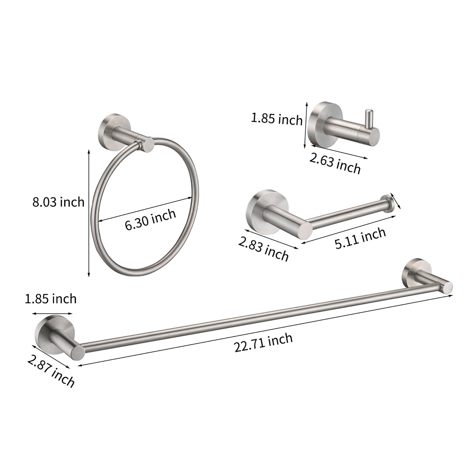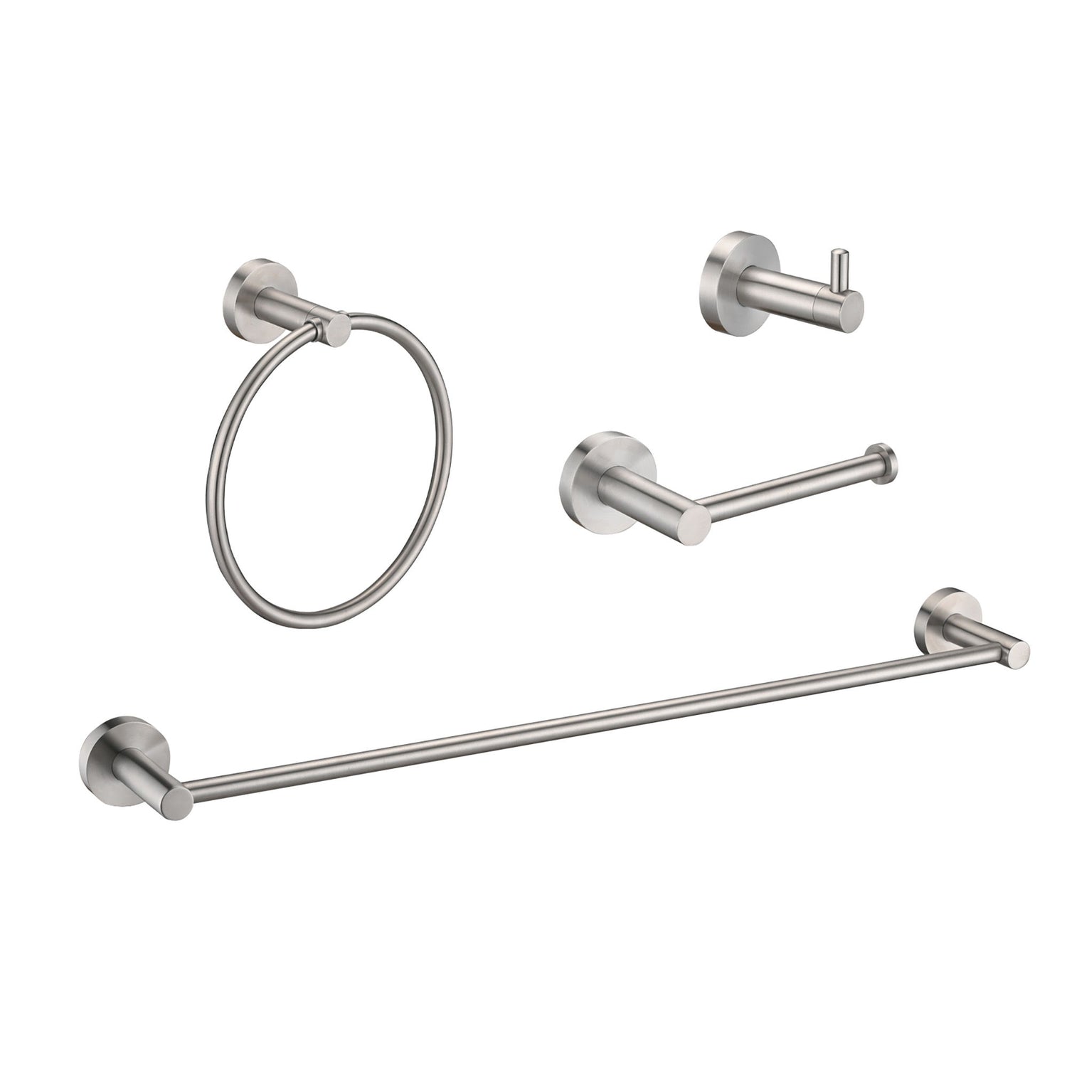 Bathroom Set 4 Pack With Towel Bar Racks, Toilet Paper Holder, Ring, Hook, Stainless Steel - Brushed Nickel