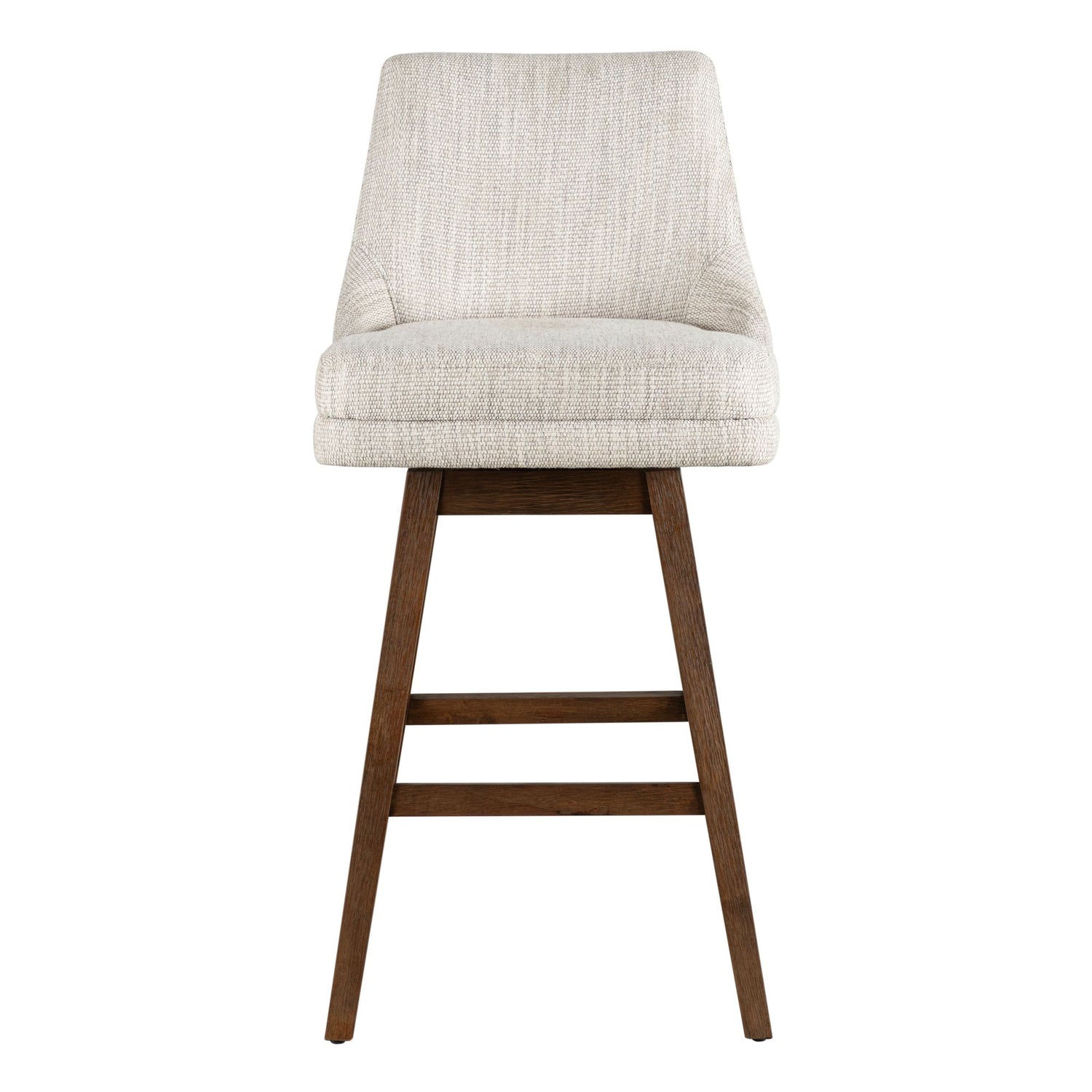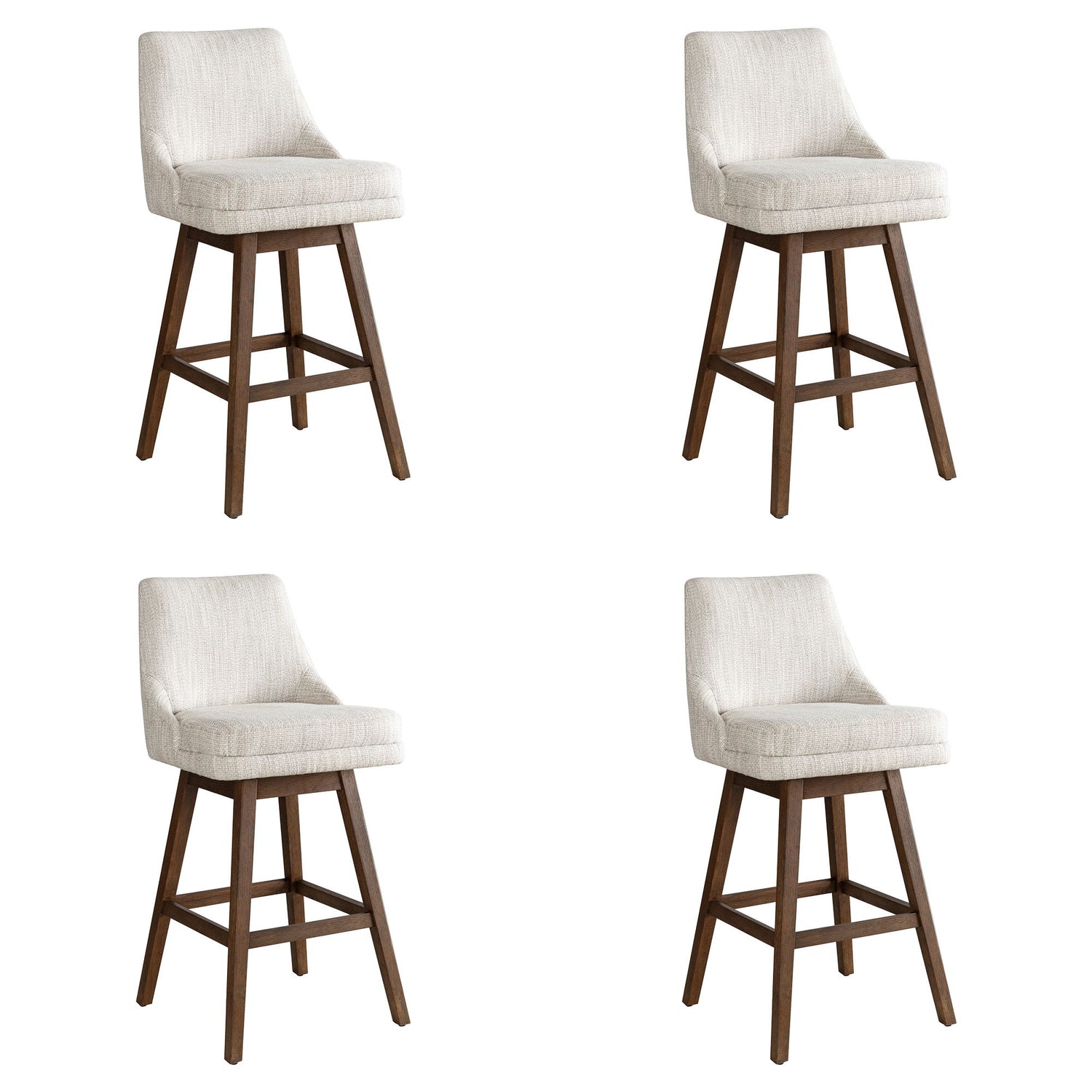 Branson - Brown Solid Wood Upholstered 30" Bar Height Swivel Barstool (Set of 4) - Beige Fabric Seat