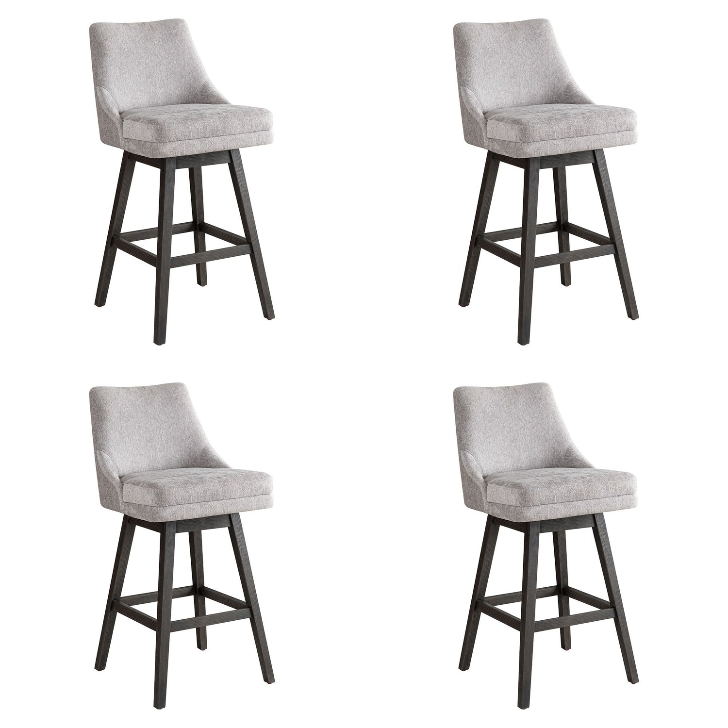 Branson - Gray Solid Wood Upholstered 30" Bar Height Swivel Barstool (Set of 4) - Gray Fabric Seat