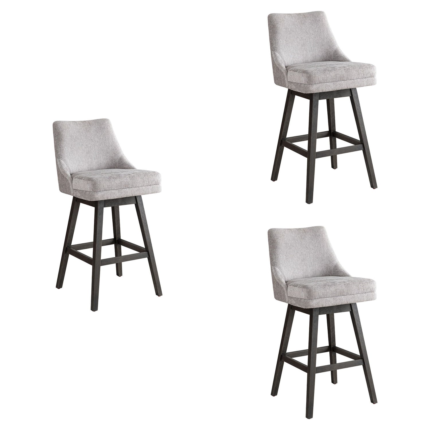 Branson - Gray Solid Wood Upholstered 30" Bar Height Swivel Barstool (Set of 3) - Gray Fabric Seat