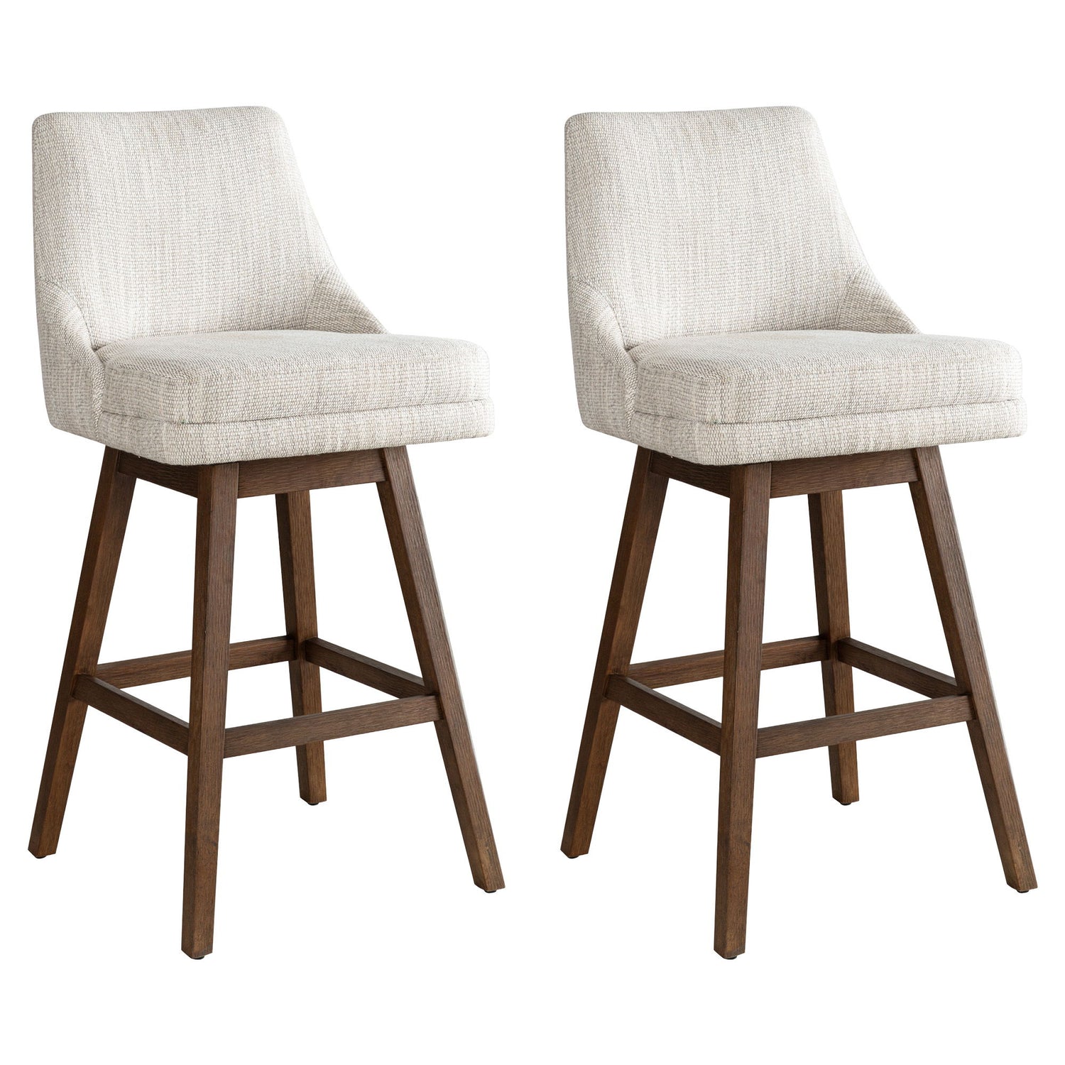 Branson - Brown Solid Wood Upholstered 30" Bar Height Swivel Barstool (Set of 2) - Beige Fabric Seat