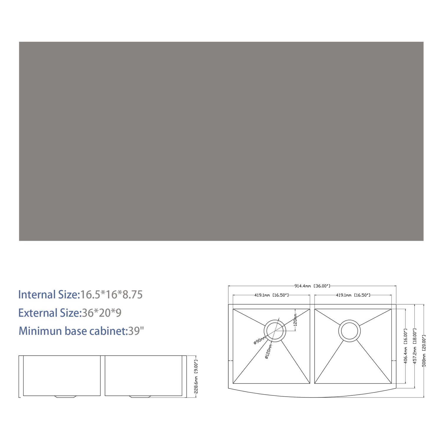 Farmhouse Double Bowl Sink With 50/50 Layout - Gray / 33"W x 20"D x 9"H is backordered and will ship as soon as it is back in stock.