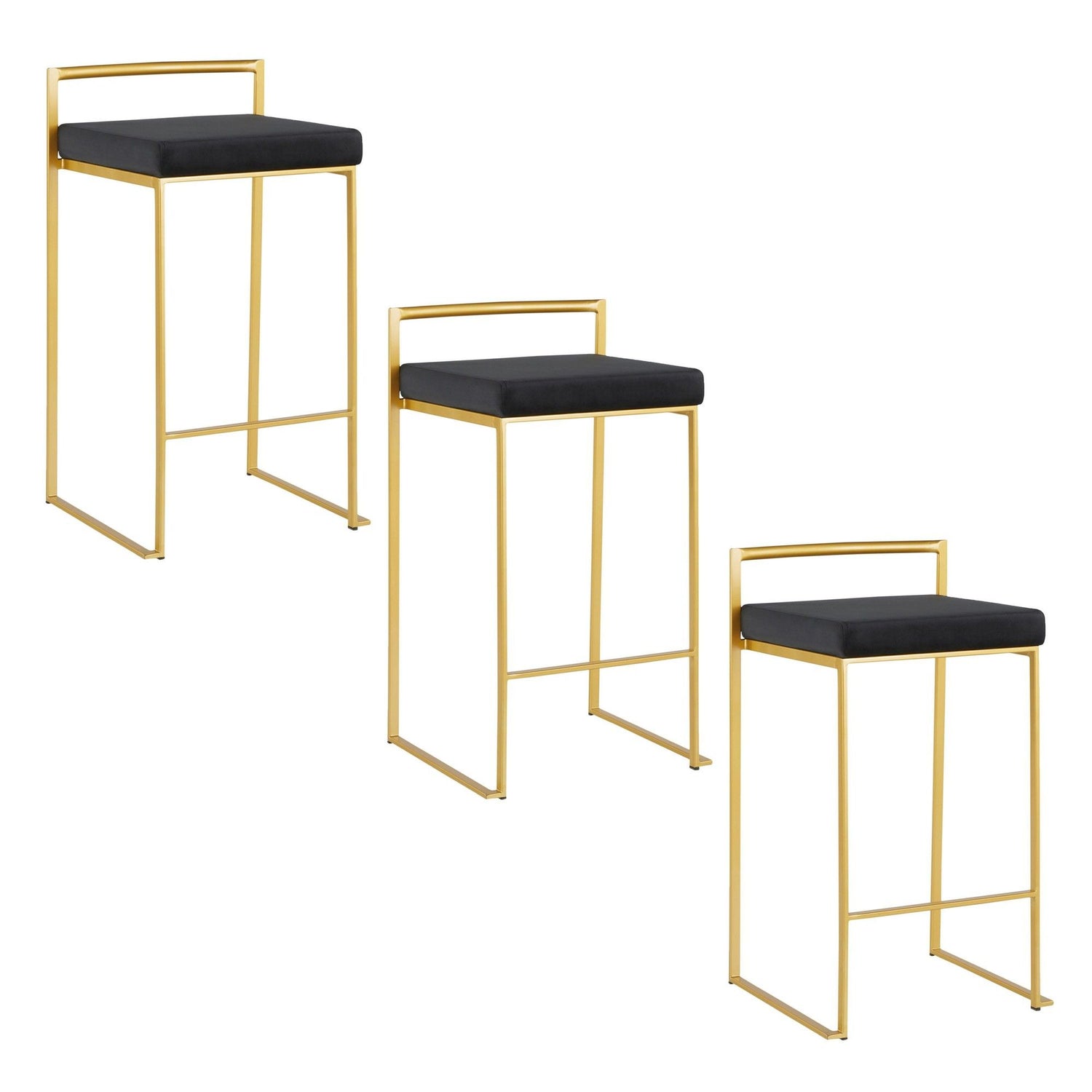 Fuji - 26" Counter Stool (Set of 3) - Gold Metal With Black Velvet Cushion