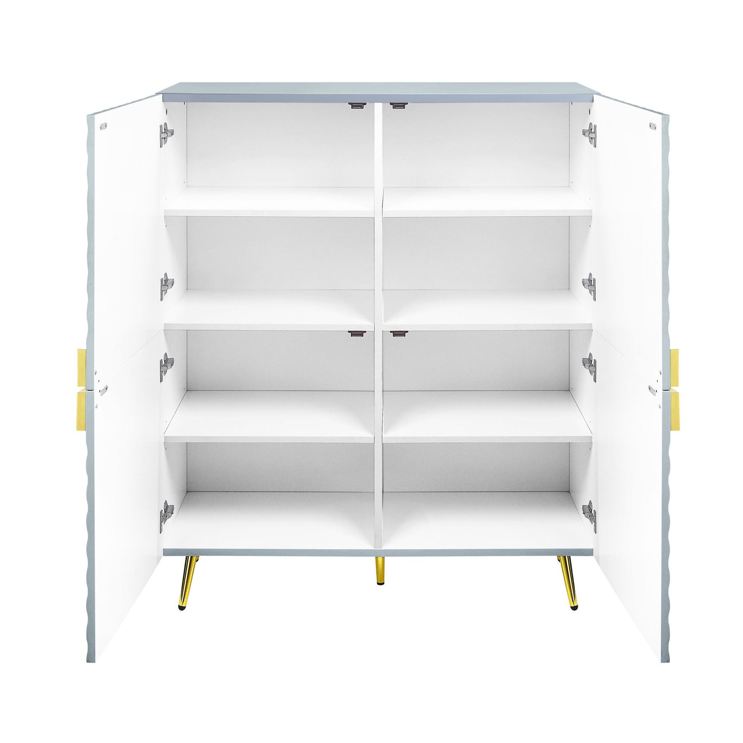• Ample Storage: Equipped with four doors and four adjustable shelves, this cabinet offers generous storage space, ideal for organizing belongings in a sleek and modern fashion.