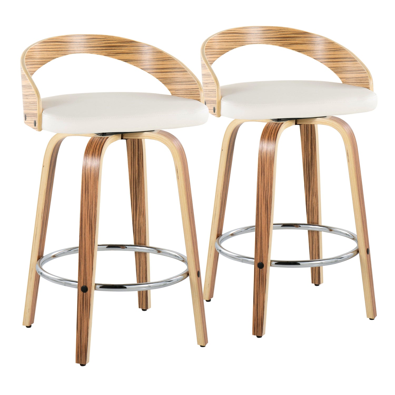 Grotto - Mid-Century Modern Fixed Height Counter Stool With Swivel With Round Footrest (Set of 2) - Zebra / White