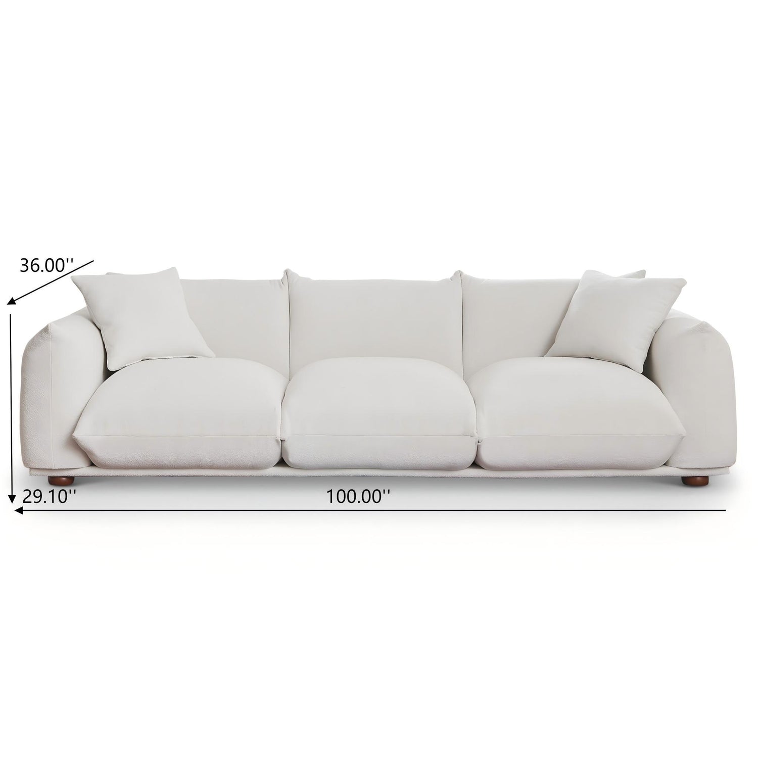 - Stylish and Versatile: The Kely 100'' Cream Boucle Upholstered Sofa is designed to be a chic and adaptable addition to any living space, including living rooms, game rooms, or entertainment areas.
