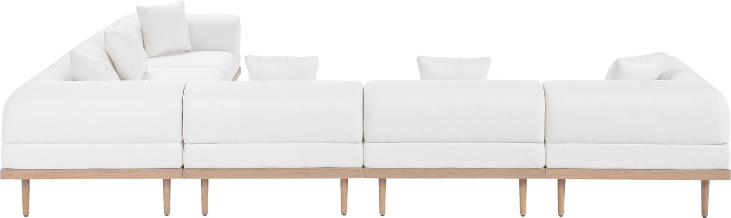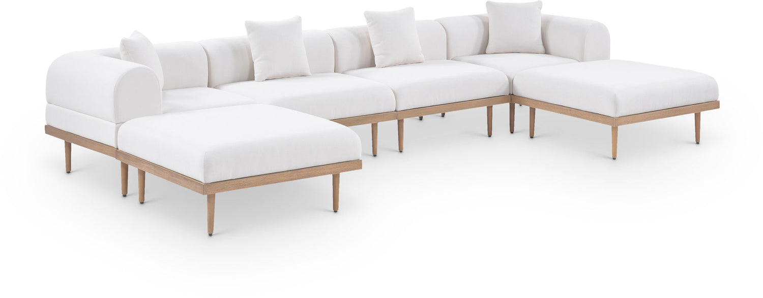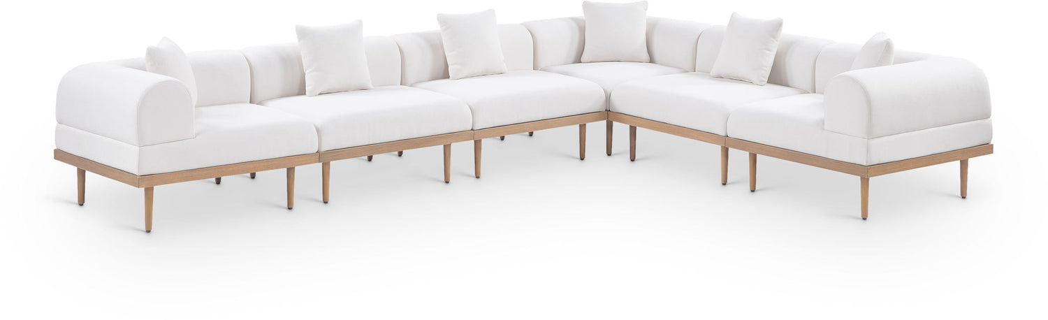 Laguna - 6 Piece Resilient Water Resistant Fabric 142" Upholstered Outdoor Patio Modular Sectional - Cream