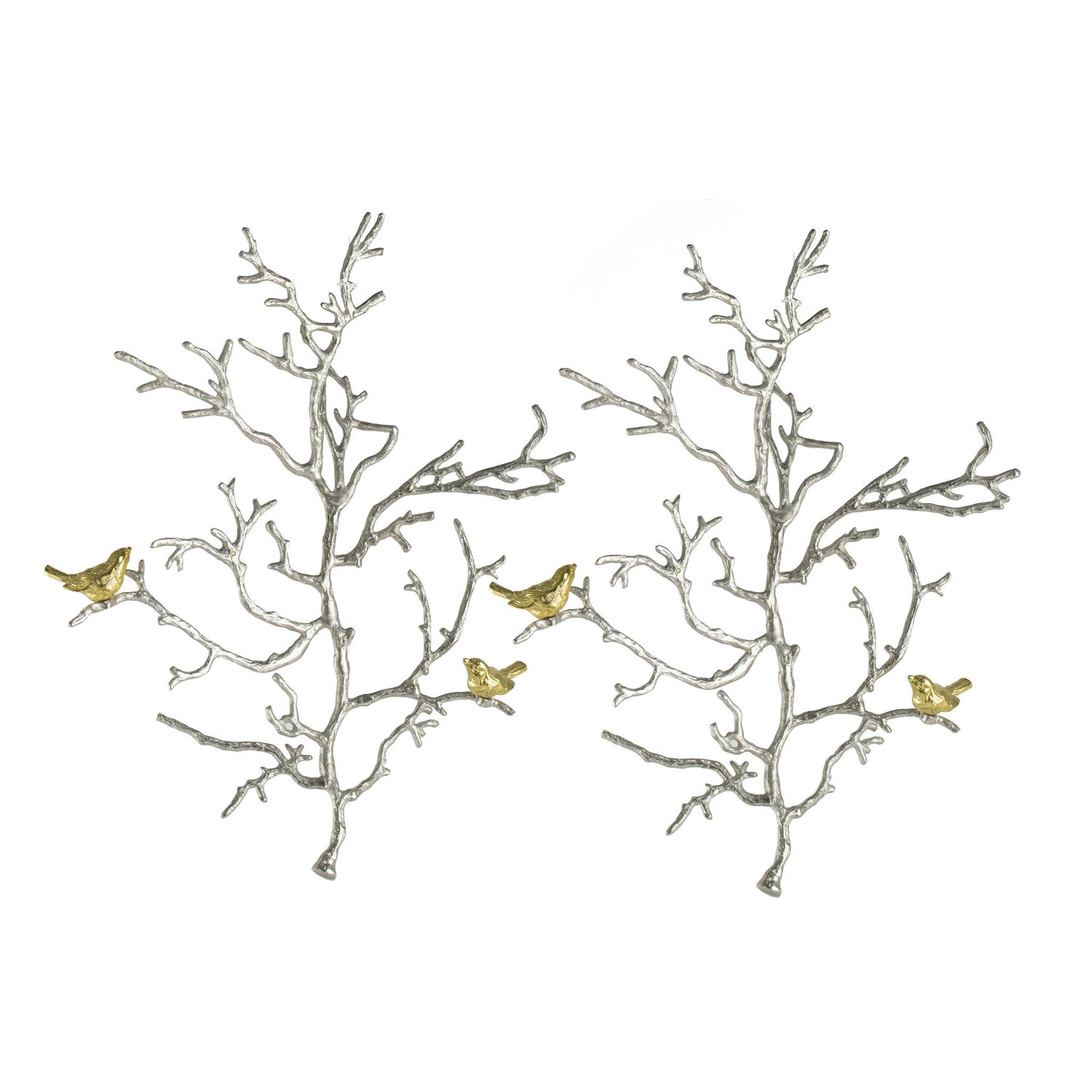 Metal Branch Wall Sculptures With Bird Accents (Set of 2) - Silver Multi