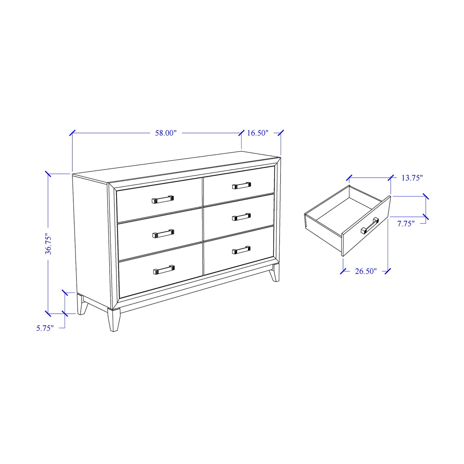 - Modern Design: The MIRAGE DRESSER features a sleek finish that complements a variety of interior styles, offering a modern and sophisticated look to any bedroom setting.