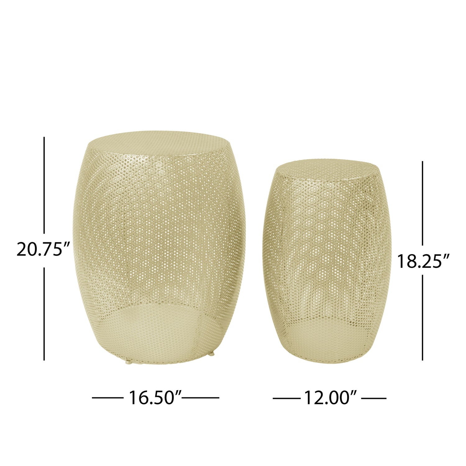 - MODERN DESIGN: This side table set boasts a sleek gold finish with an openwork design that features captivating style.