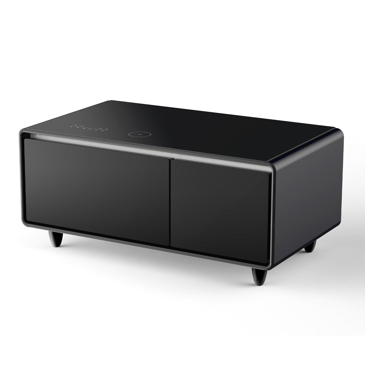 Modern Smart Coffee Table With Built-In Fridge - Bluetooth Speaker, Wireless Charging, Touch Control Panel, USB Interface, Outlet Protection, Atmosphere Light - Black