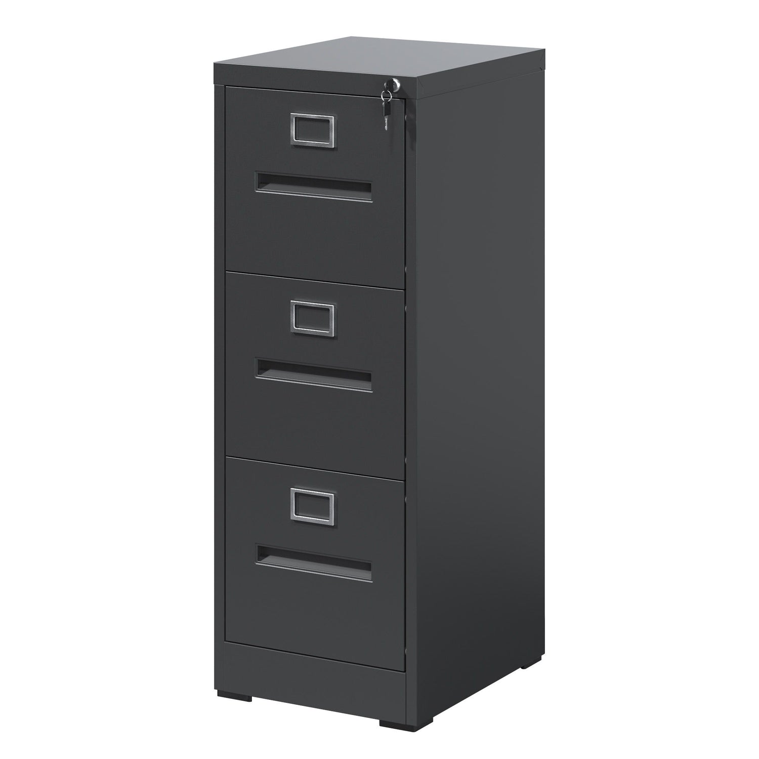 Premium Metal Vertical 3 Drawer File Cabinet With Lock For A4 Legal / Letter Size Documents, Steel - Gunmetal Black