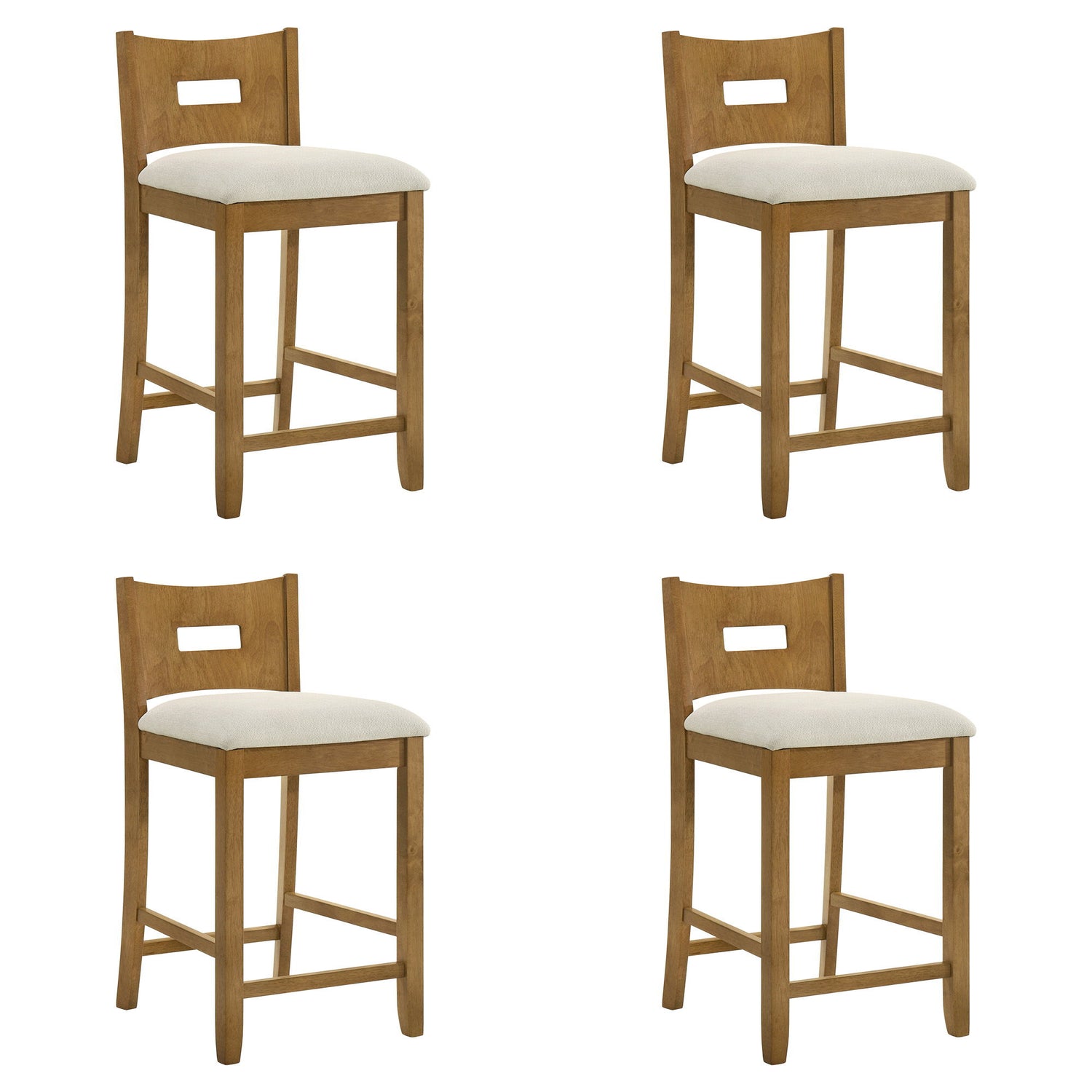 Ren - 26" Amber Glow Counter Height Rubberwood Barstool (Set of 4) - Ivory Fabric Seat