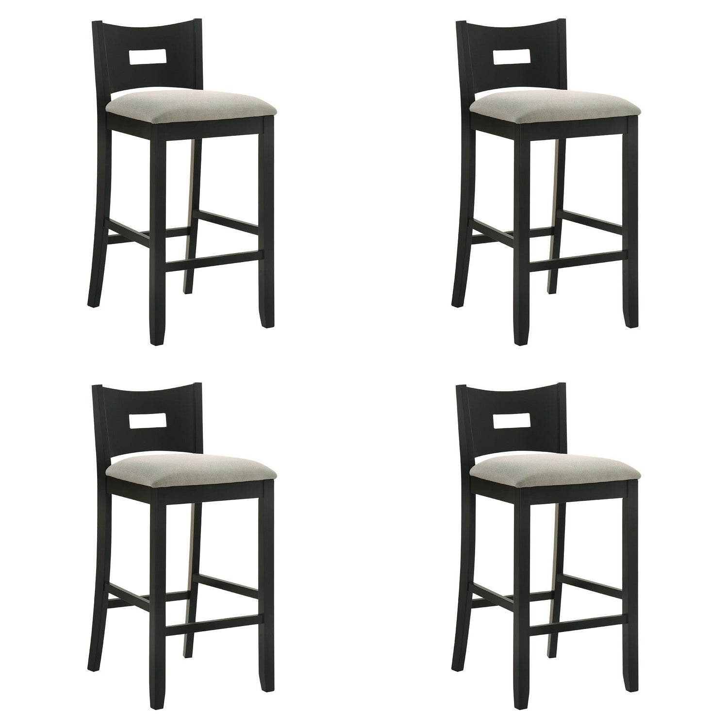 Ren - 26" Matte Black Counter Height Rubberwood Barstool (Set of 4) - Fog Fabric Seat