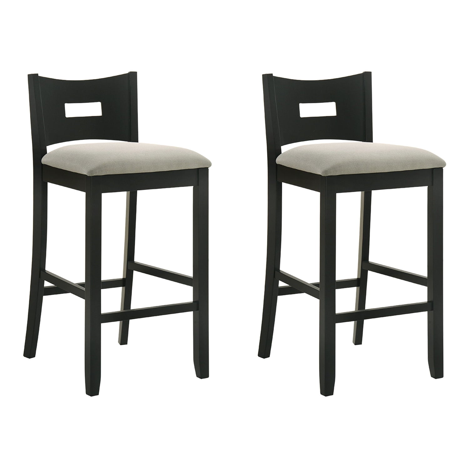Ren - 26" Matte Black Counter Height Rubberwood Barstool (Set of 2) - Fog Fabric Seat