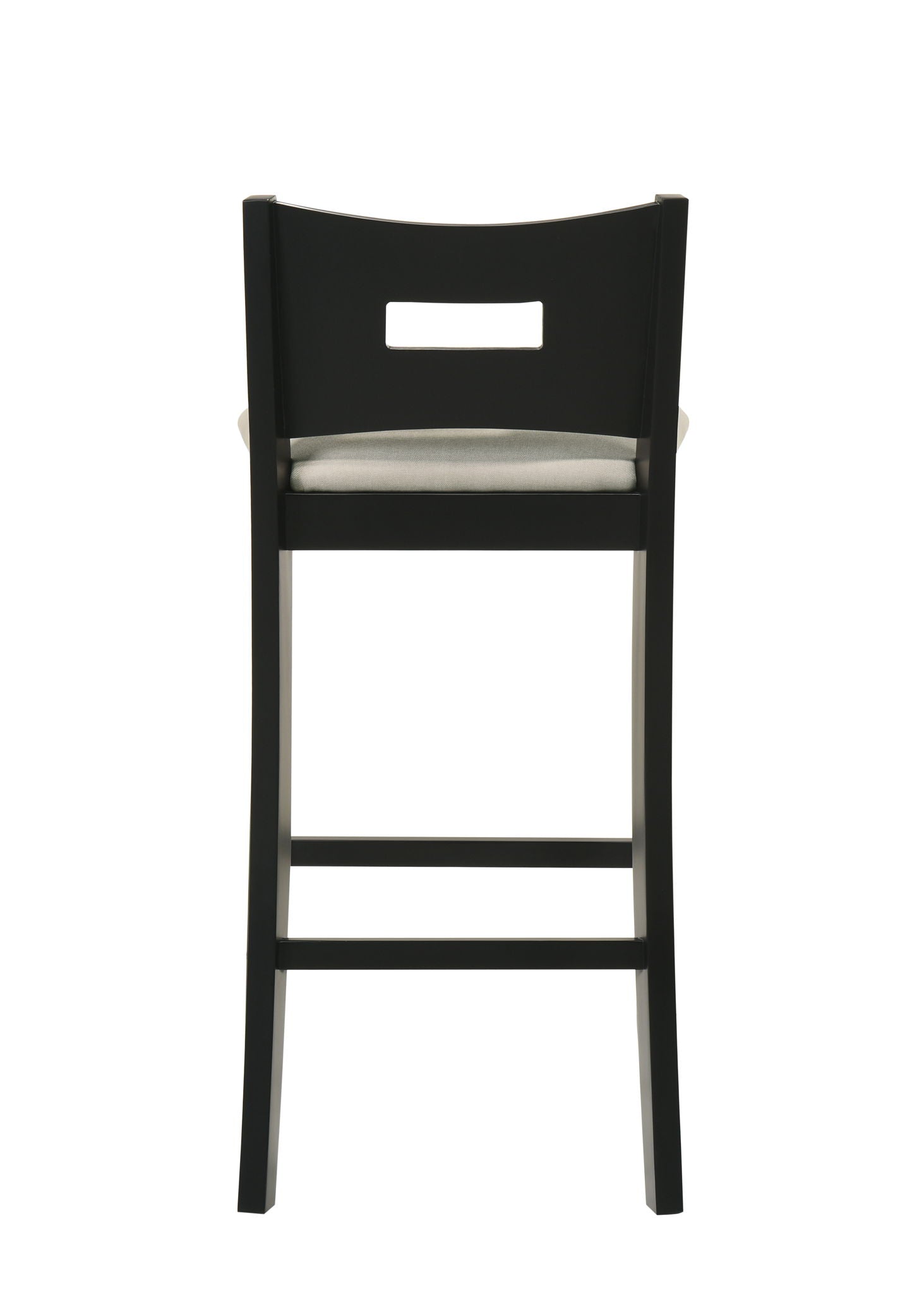 Ren - 26" Matte Black Counter Height Rubberwood Barstool (Set of 3) - Fog Fabric Seat