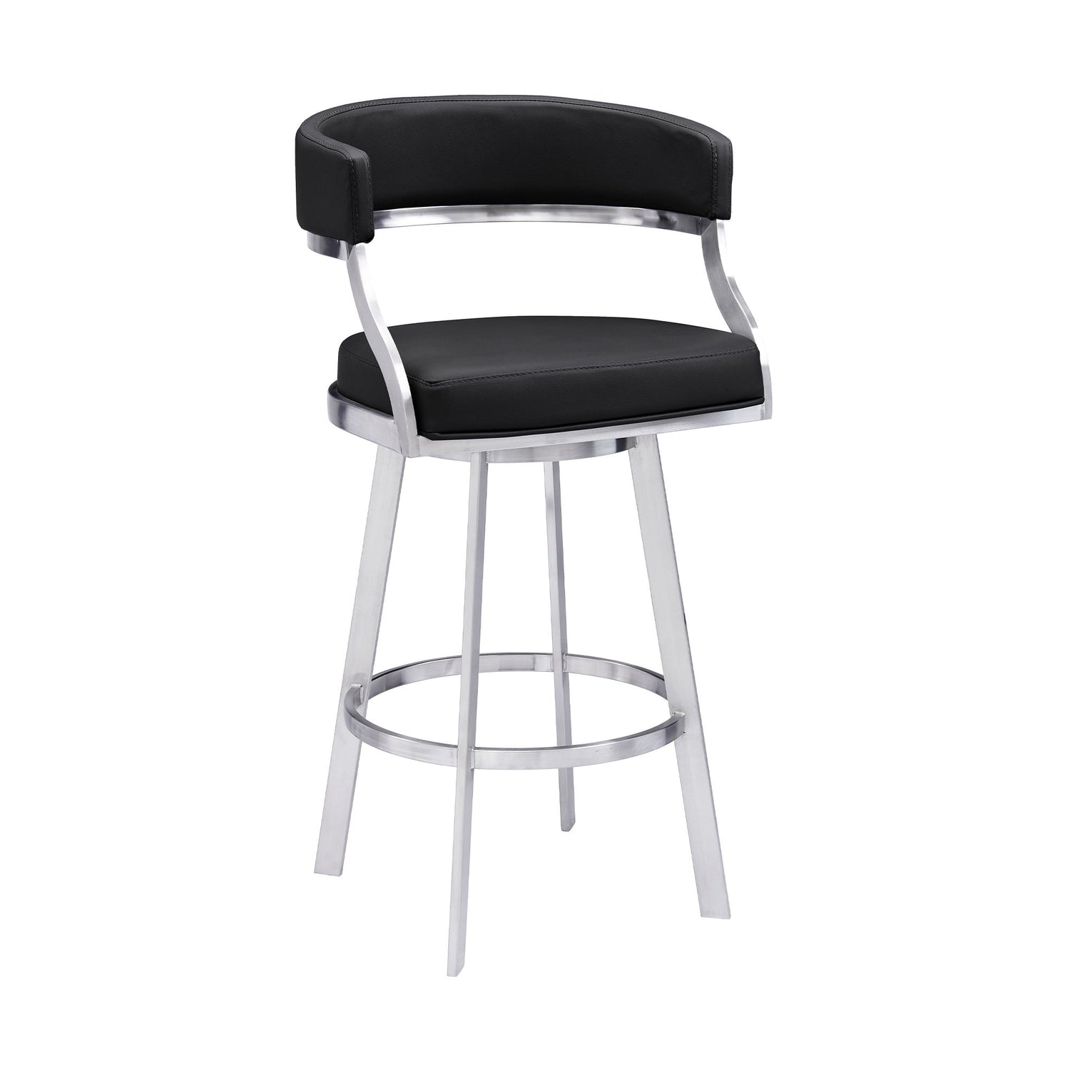 Saturn - 30" Bar Height Swivel Bar Stool - Brushed Silver / Black