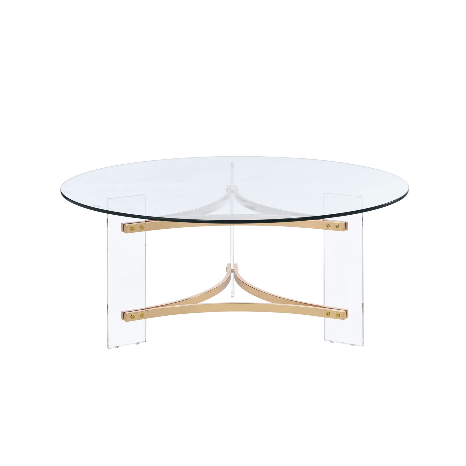 - Stylish Design: This coffee table features a modern, round tempered glass top with 10mm thickness, supported by a unique triangular chrome metal frame and acrylic base, adding a sleek, contemporary touch to any room.