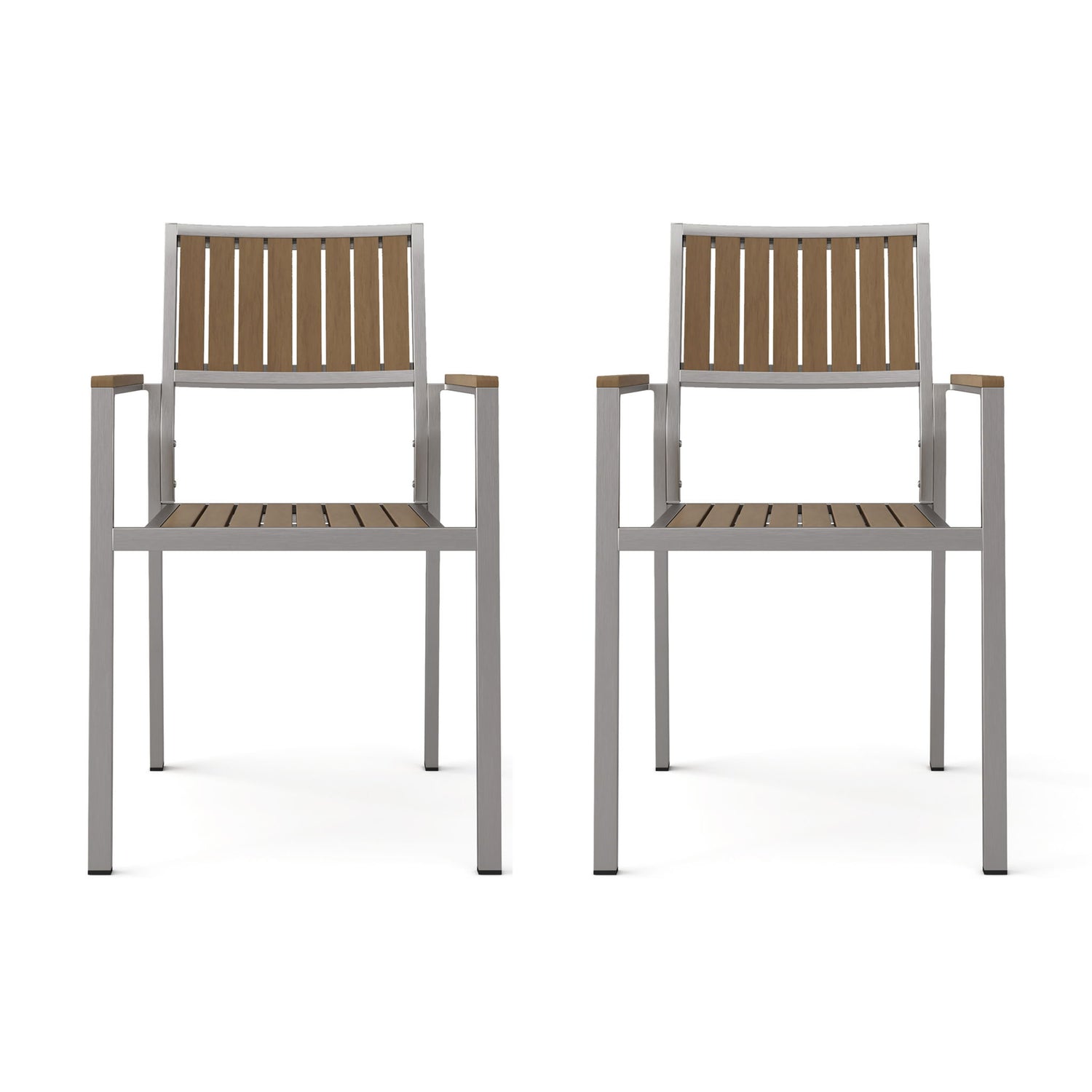 Stylish Modern Faux Wood & Aluminum Outdoor Dining Chairs, (Set of 2) - Natural