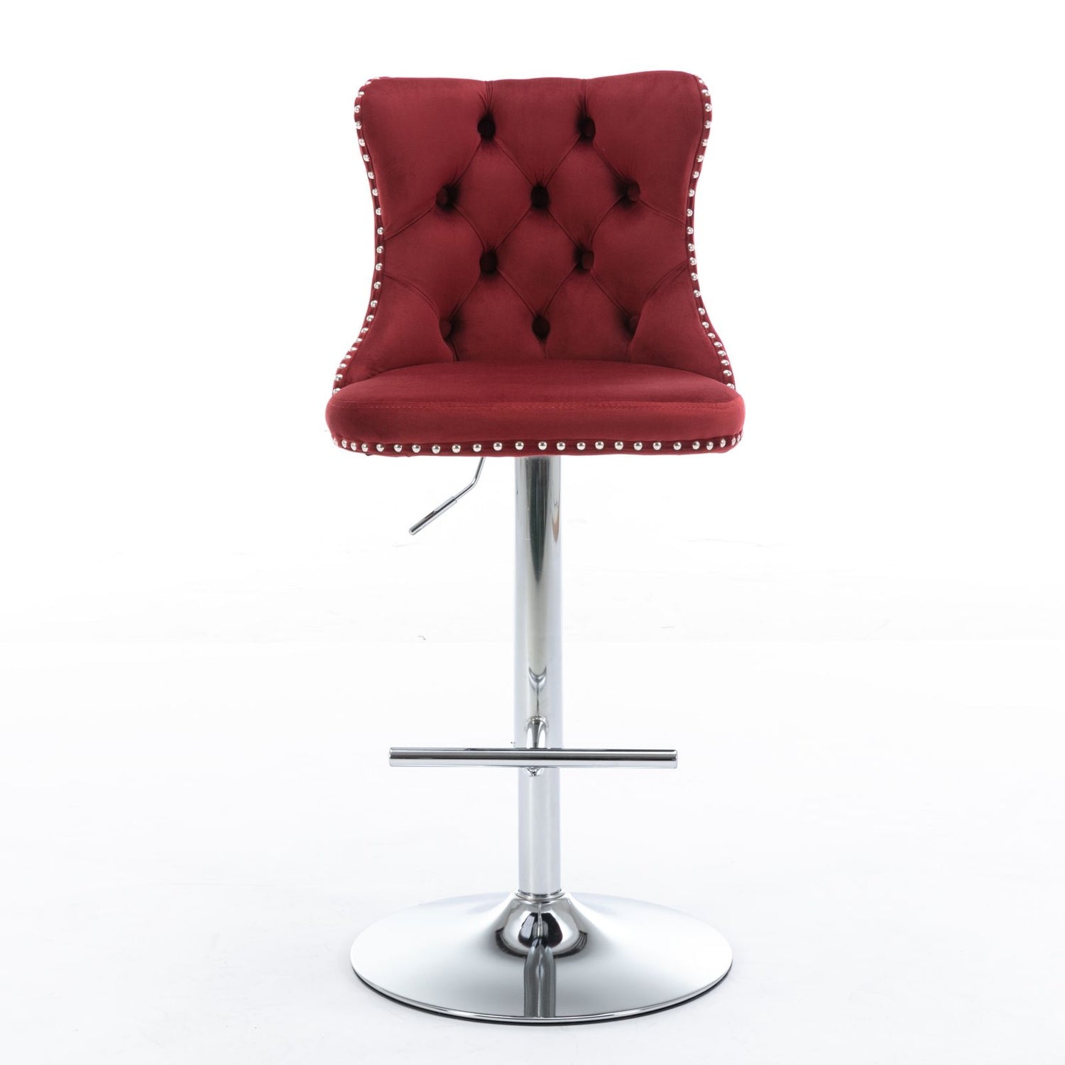 Swivel Velvet Barstools Adjusatble Seat Height From 25-33", Chrome Base Bar Stools With Backs Comfortable Tufted For Home Pub And Kitchen Island, 1712Wr (Set of 2) - Wine Red / Burgundy