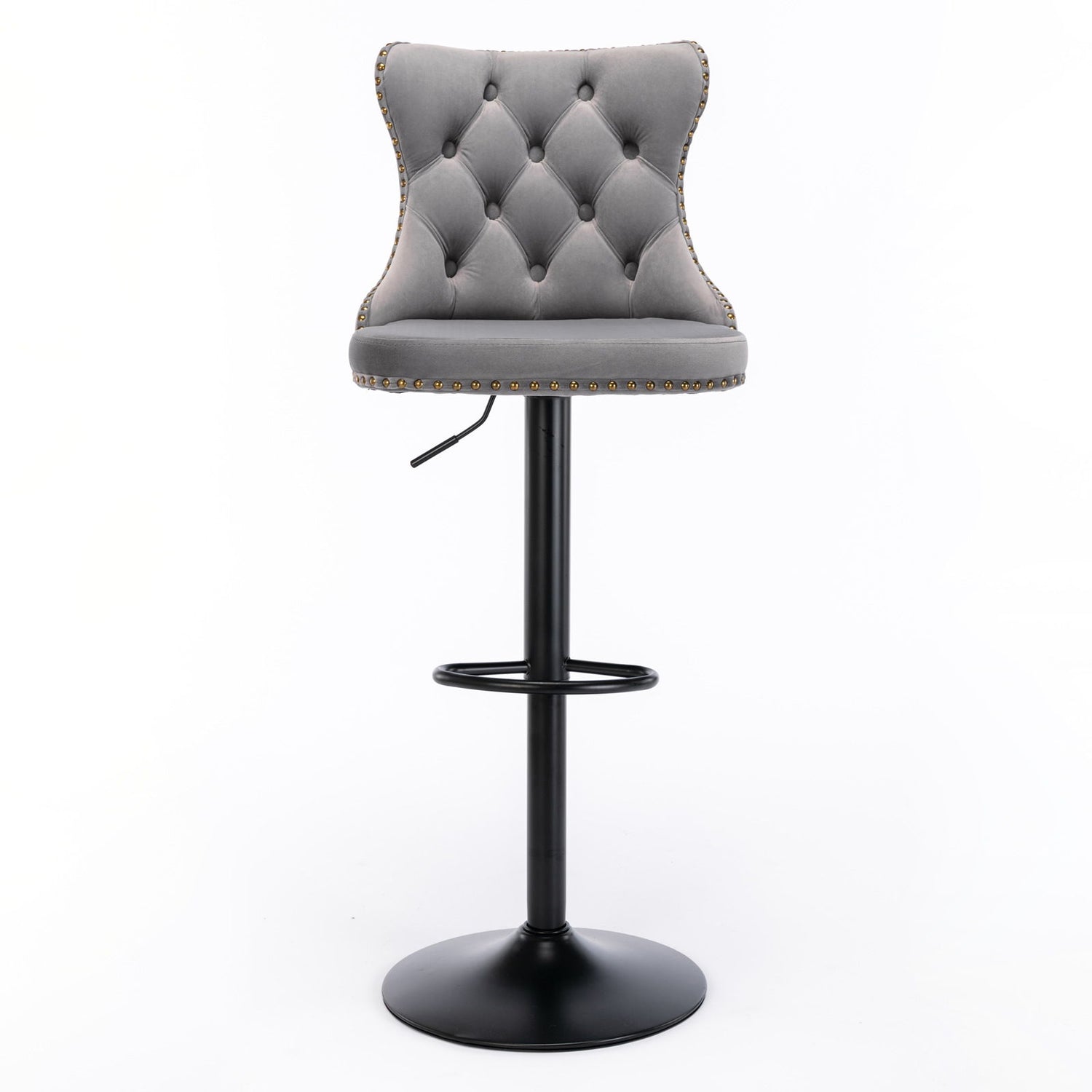 Swivel Velvet Barstools Adjusatble Seat Height, Modern Upholstered Bar Stools With Backs Comfortable Tufted For Home Pub And Kitchen Island (Set of 2) - Gray