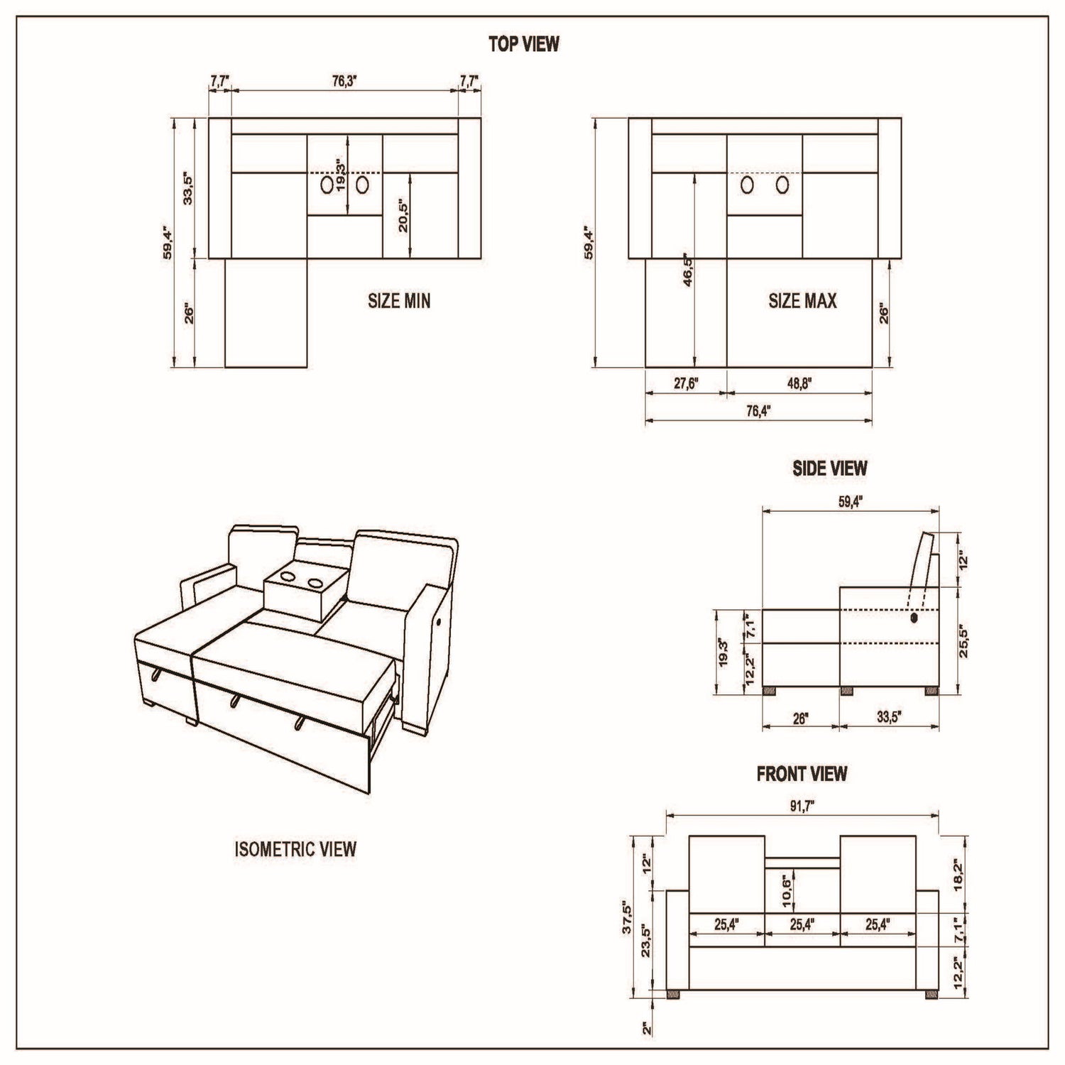 91.7"W x 59.4"D x 37.5"H - 101.02 lb